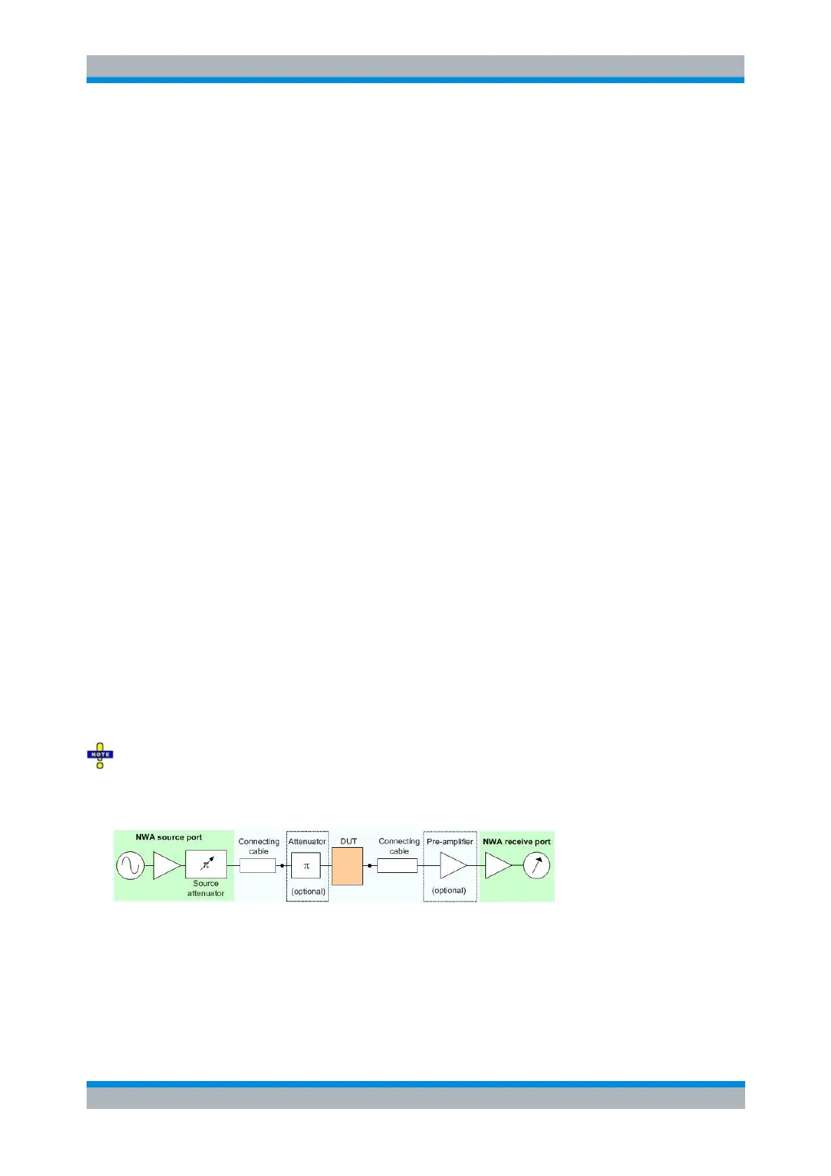 An attenuator between the NWA source port and the DUT input limits the source power.