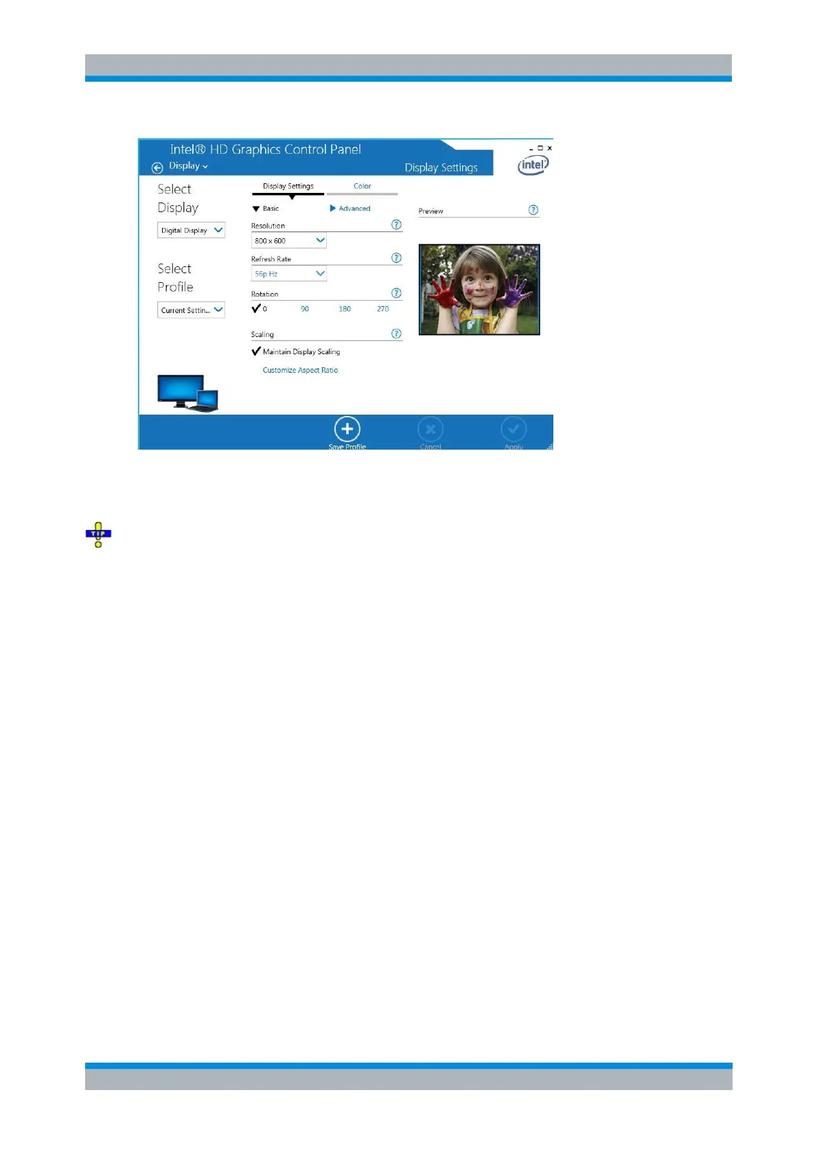 After the external monitor is active, the Graphics Controller displays a list of possible resolutions.