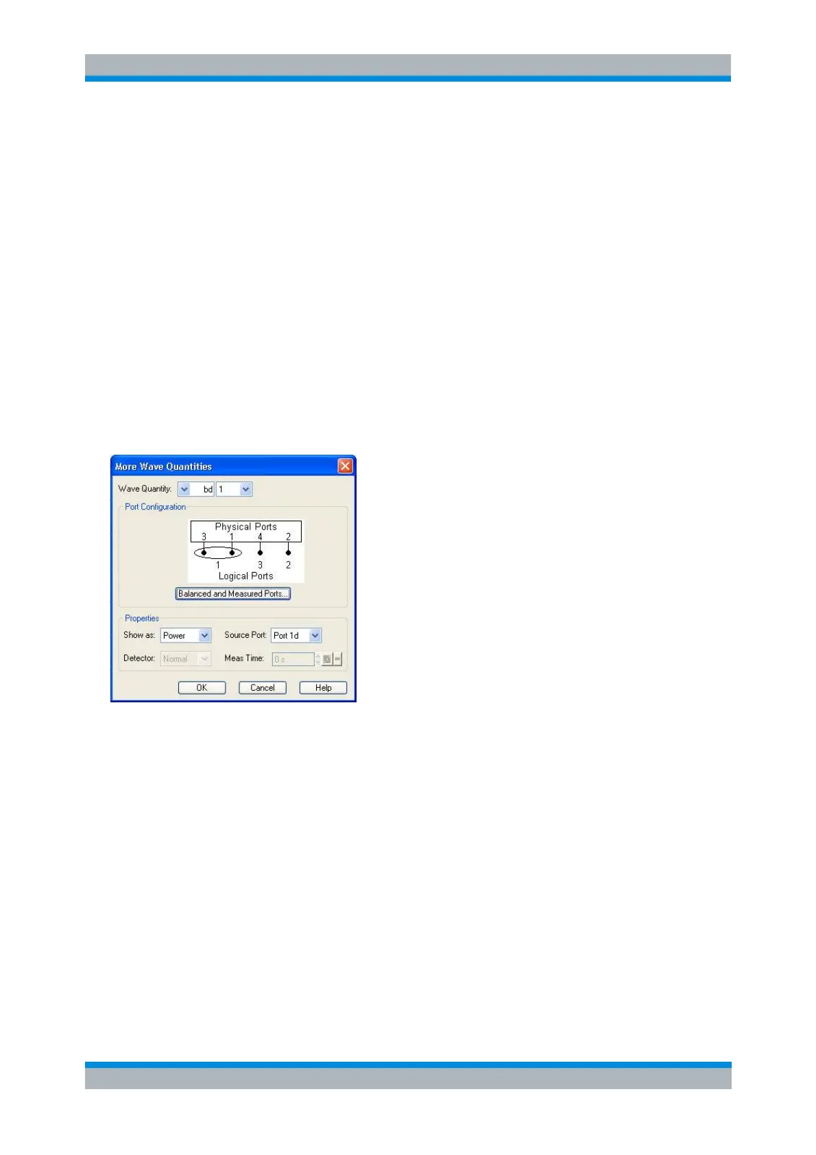 higher port numbers. In true differential mode, the dialog also offers balanced wave quantities.