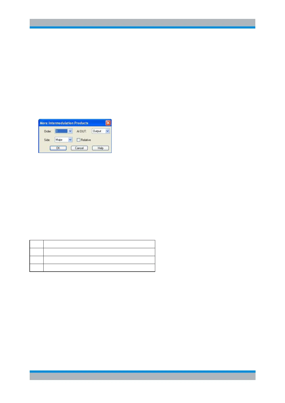 The controls in the dialog define the order of the intermodulation product, measurement at the DUT input