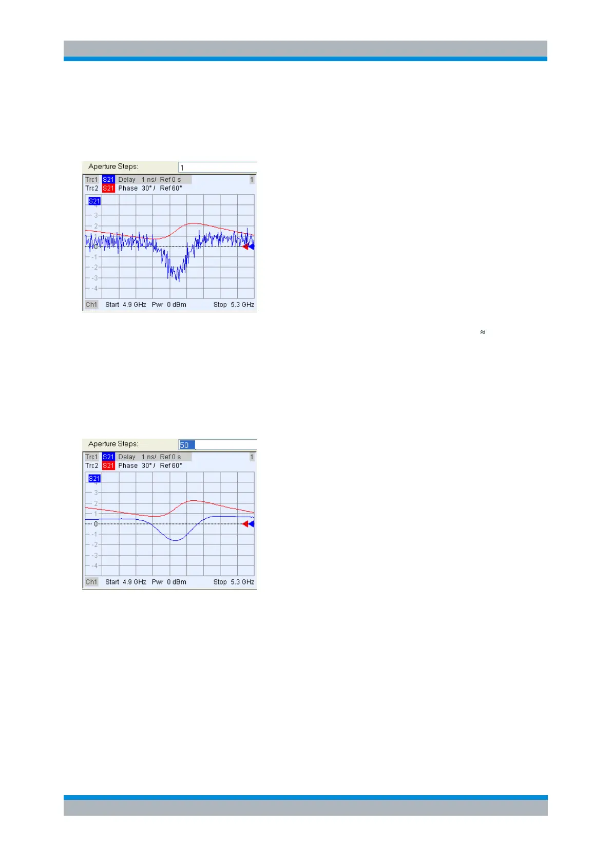 results in a smoothing effect of the delay trace. A reduced aperture of 20 MHz yields a more