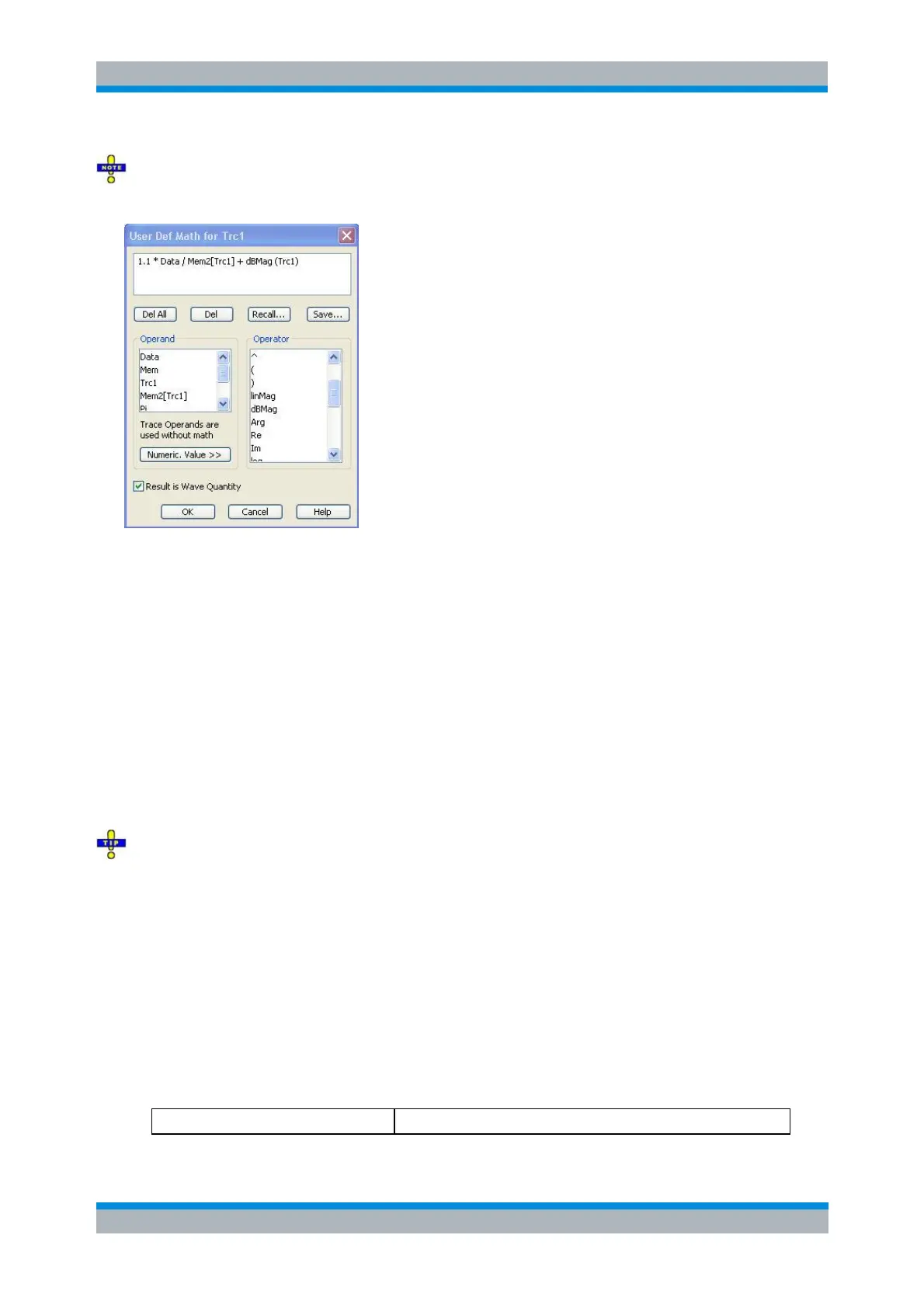 Recall... calls up an Open File dialog to load a mathematical expression from a trace math string