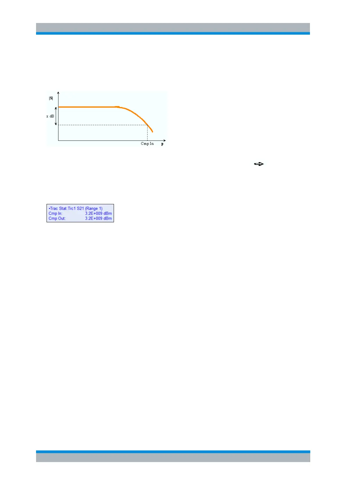 The x-dB compression point of an S-parameter or ratio is the stimulus signal level where the magnitude of
