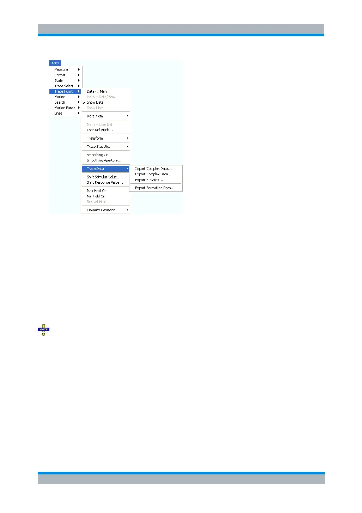 Export Complex Data... calls up a Save As... dialog to store data or memory traces to a trace file.