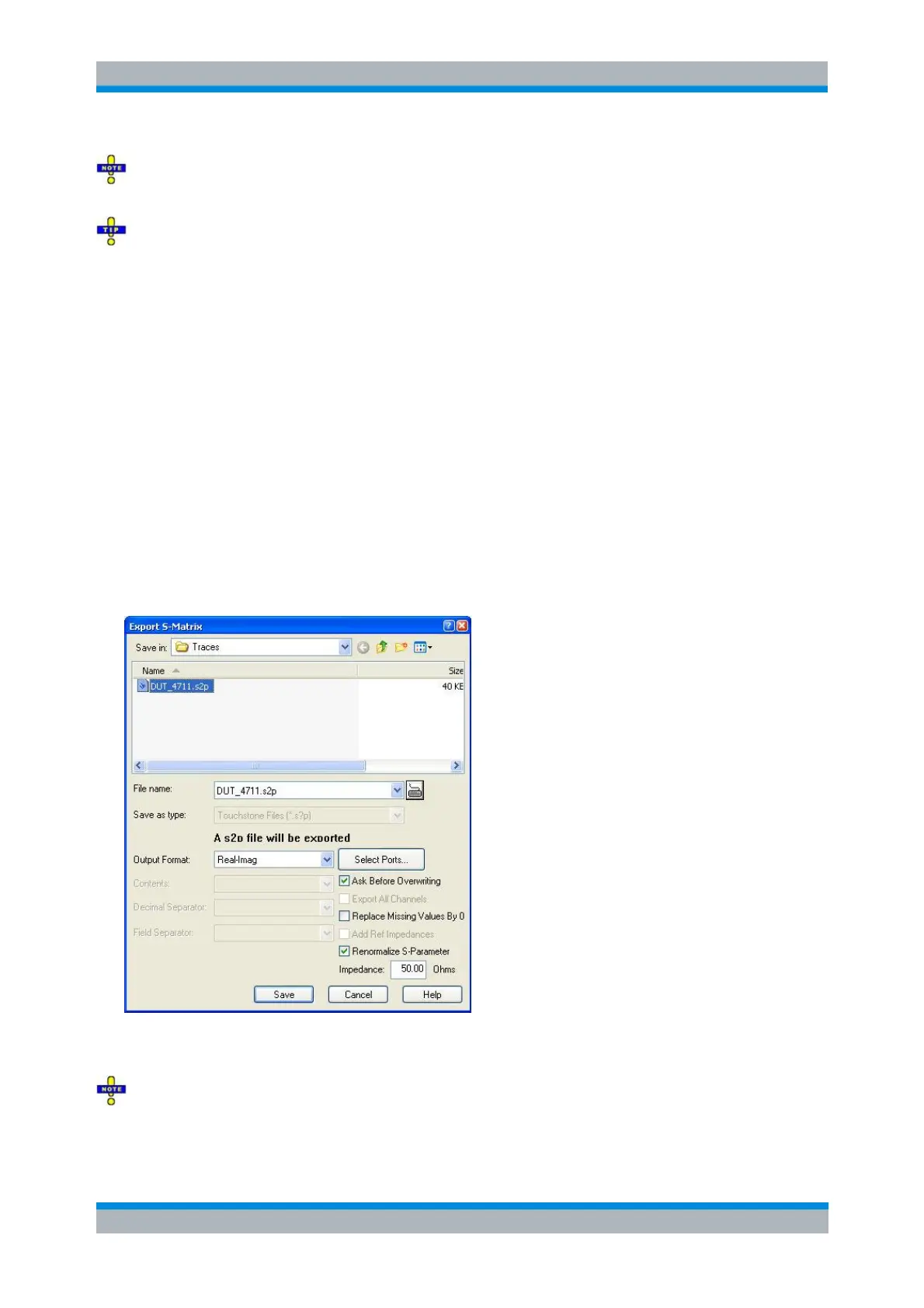 Export S-Matrix is only possible if either all related S-parameter traces are measured or a full