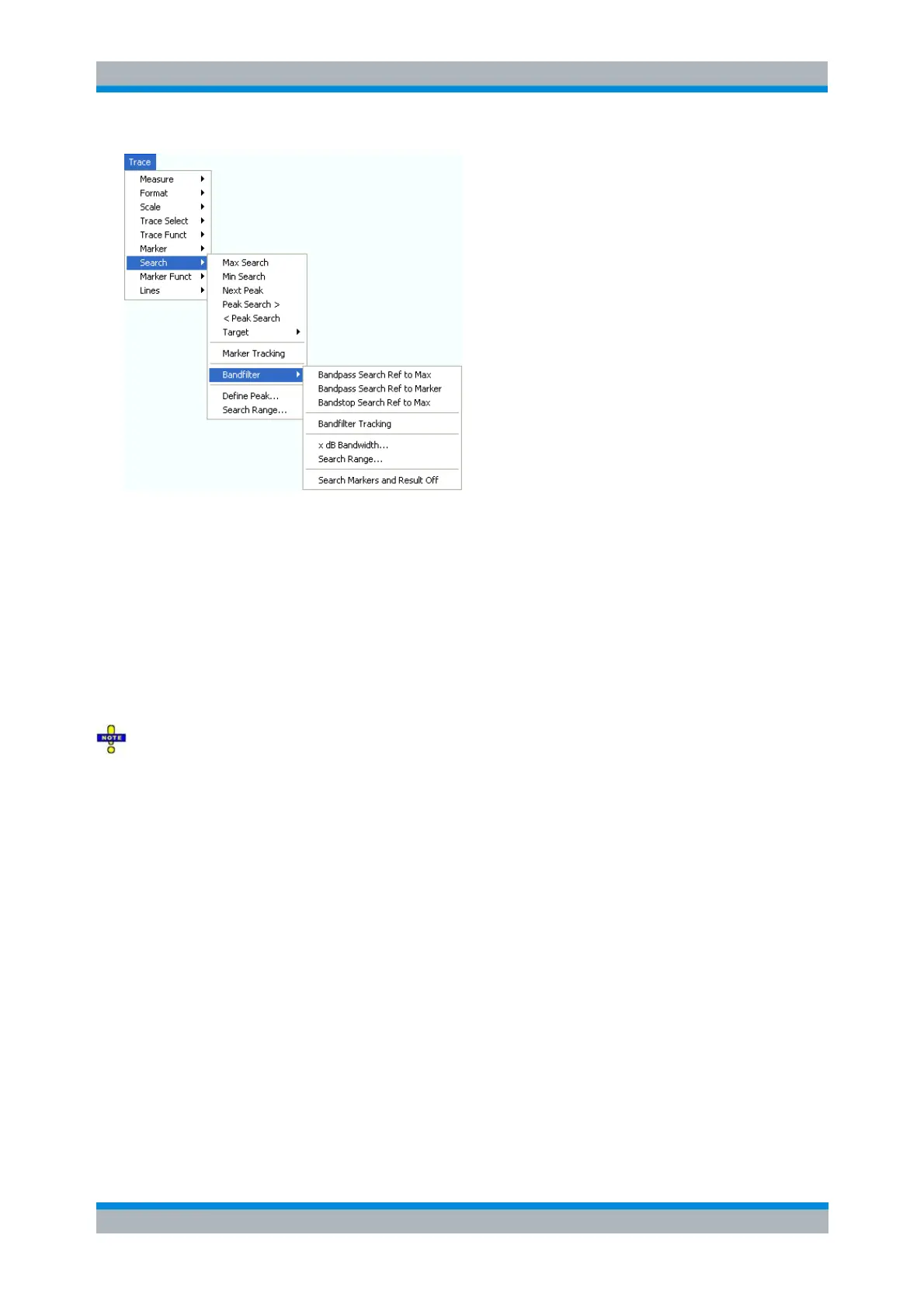 Bandpass Search Ref to Marker activates the search for a bandpass region in the active trace,