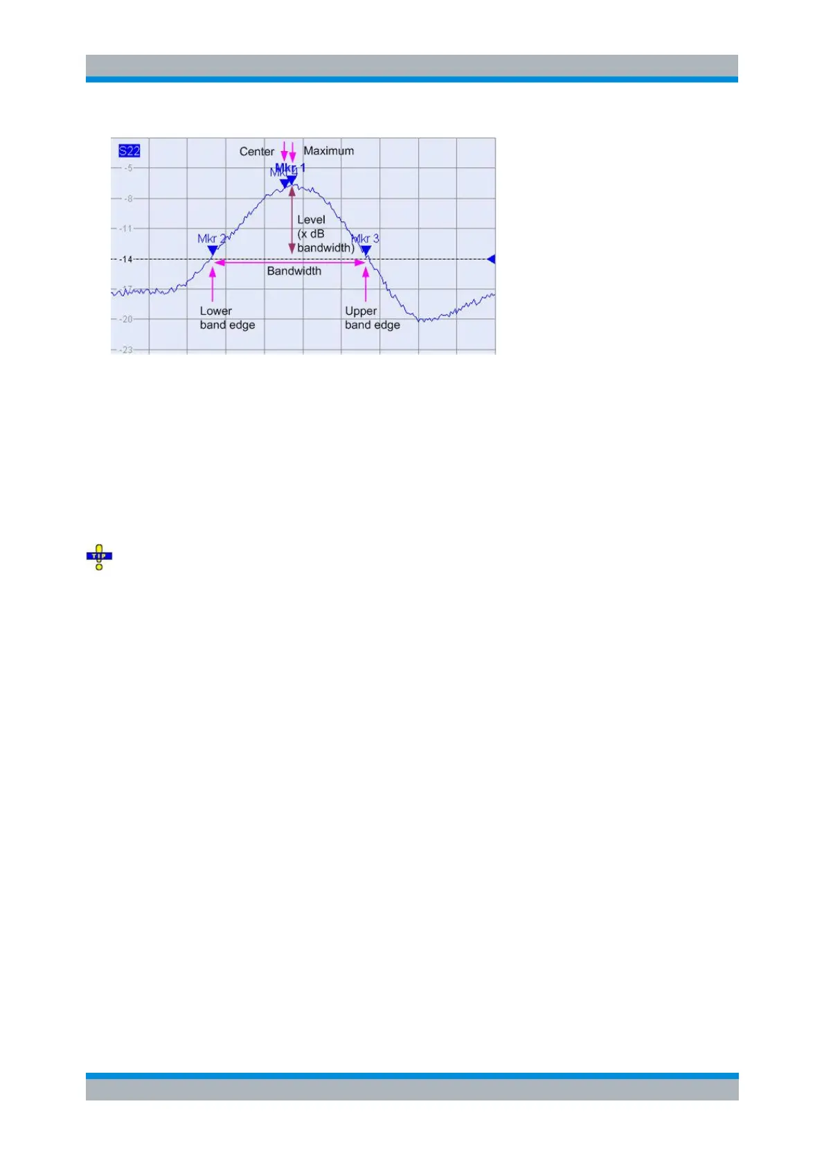 upper band edge; the band edges are defined by the magnitude of the trace at the marker position minus
