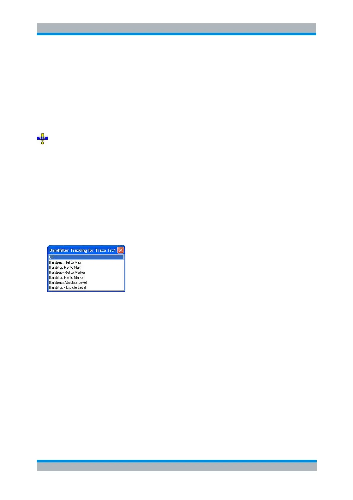 Causes the bandfilter search to be repeated after each sweep: When tracking mode is active the markers