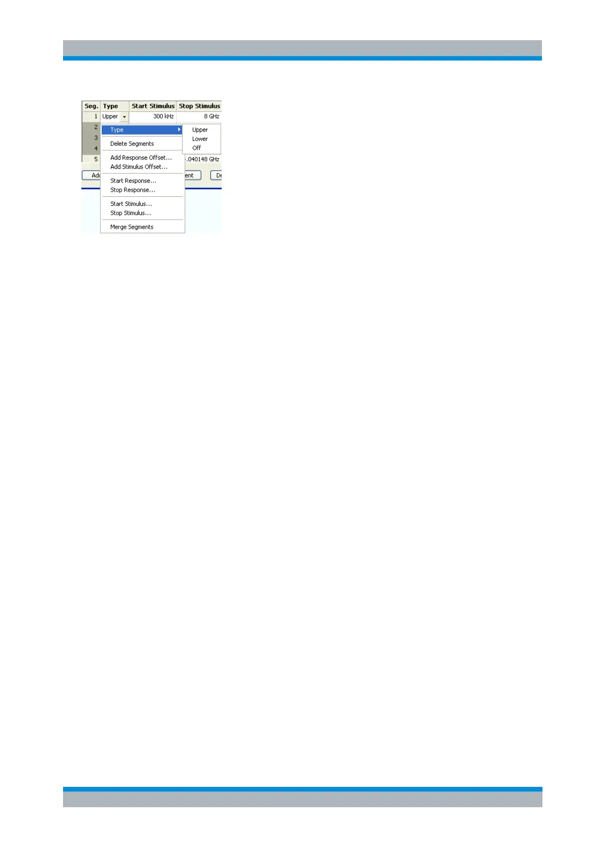 Modification of all entries in the segment table: Type, start and stop values for the stimulus and