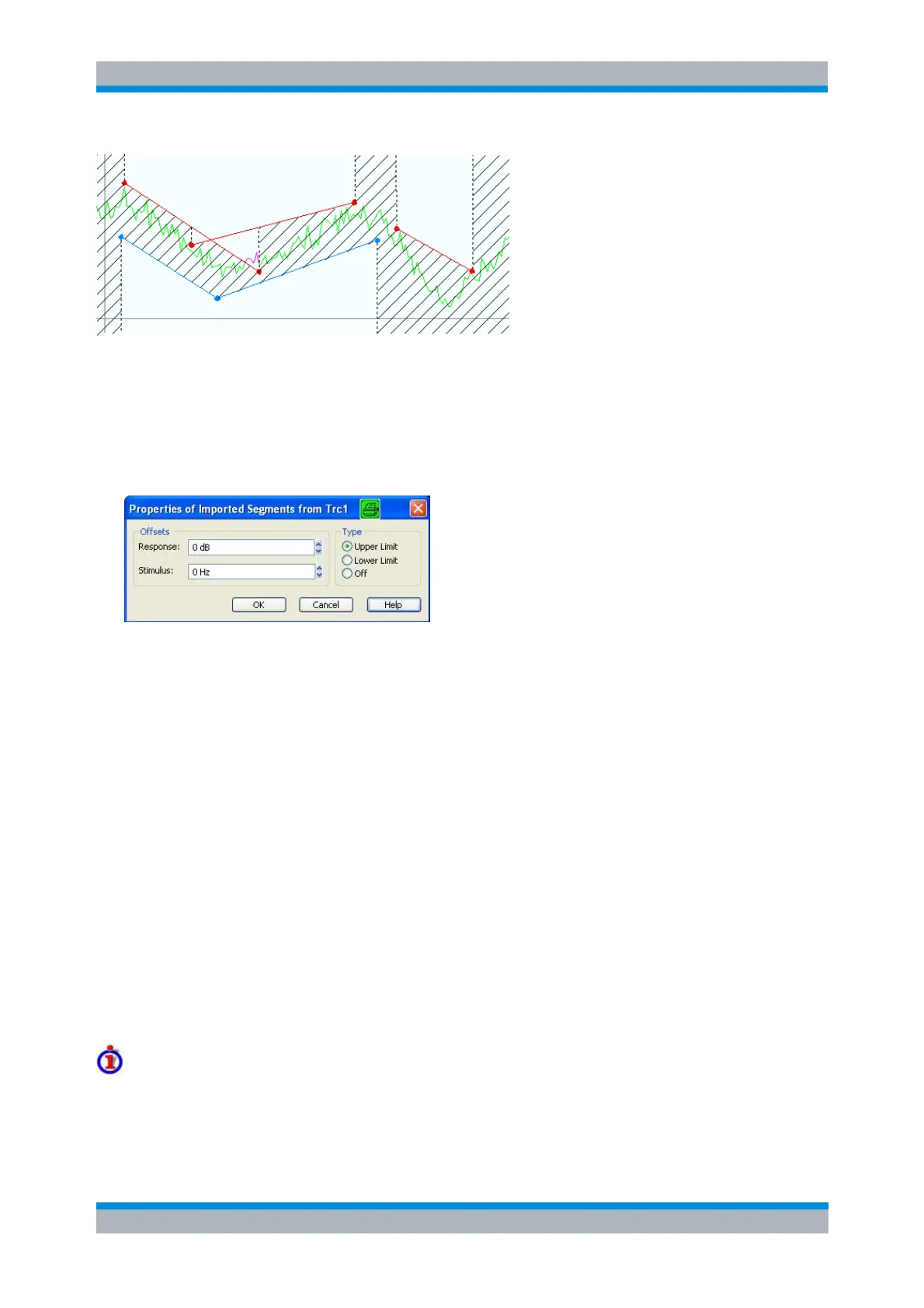 The Properties of Imported Segments dialog appears before a trace is imported into the Define Limit Line