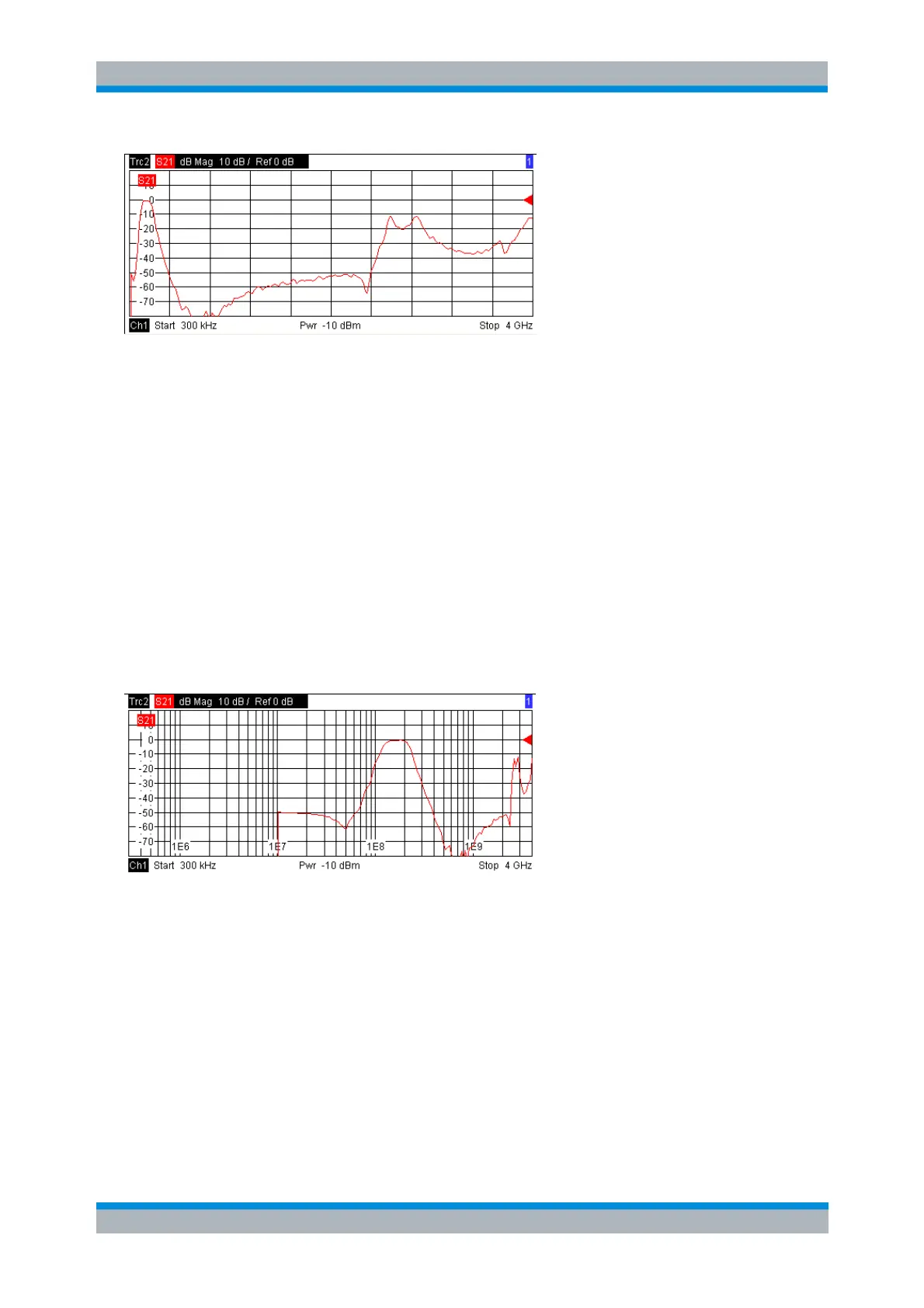 several octaves. In a Cartesian diagram the measurement result is displayed as a trace over a logarithmic