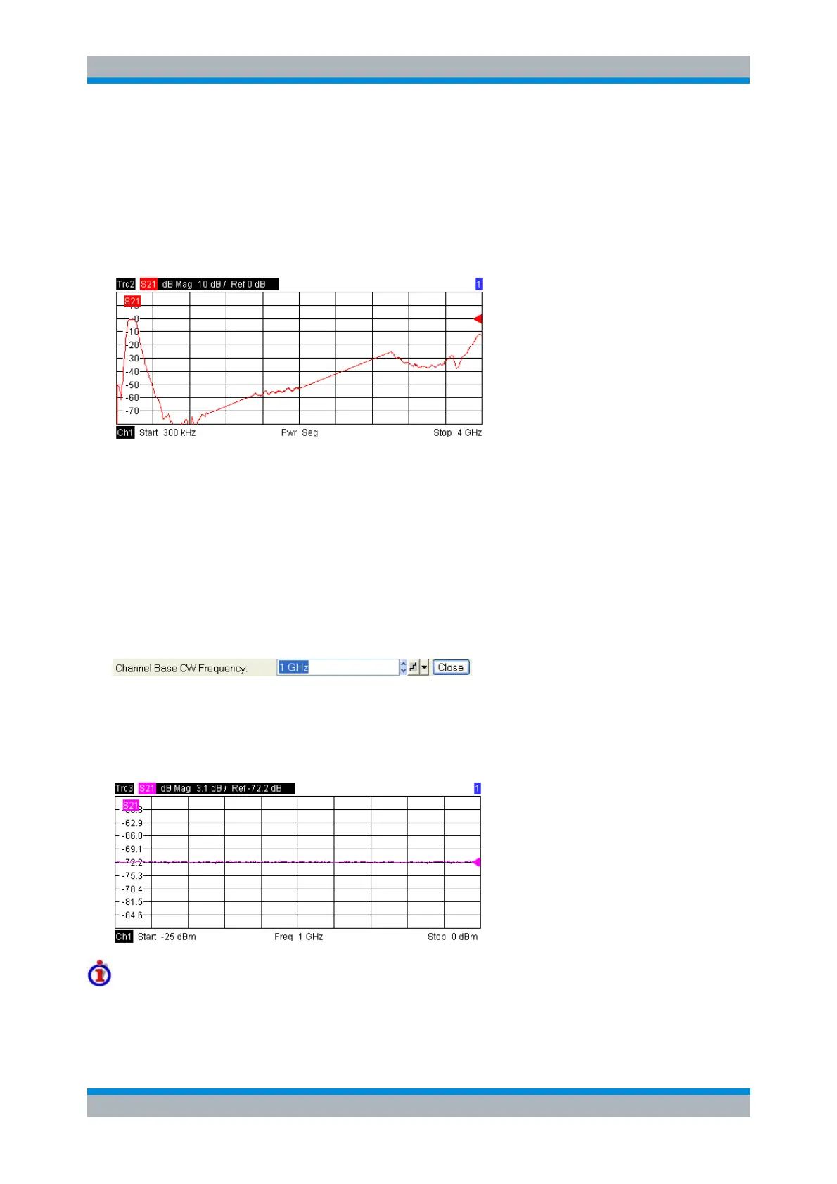 specified frequencies. In a Cartesian diagram the measurement result is displayed as a trace over a linear