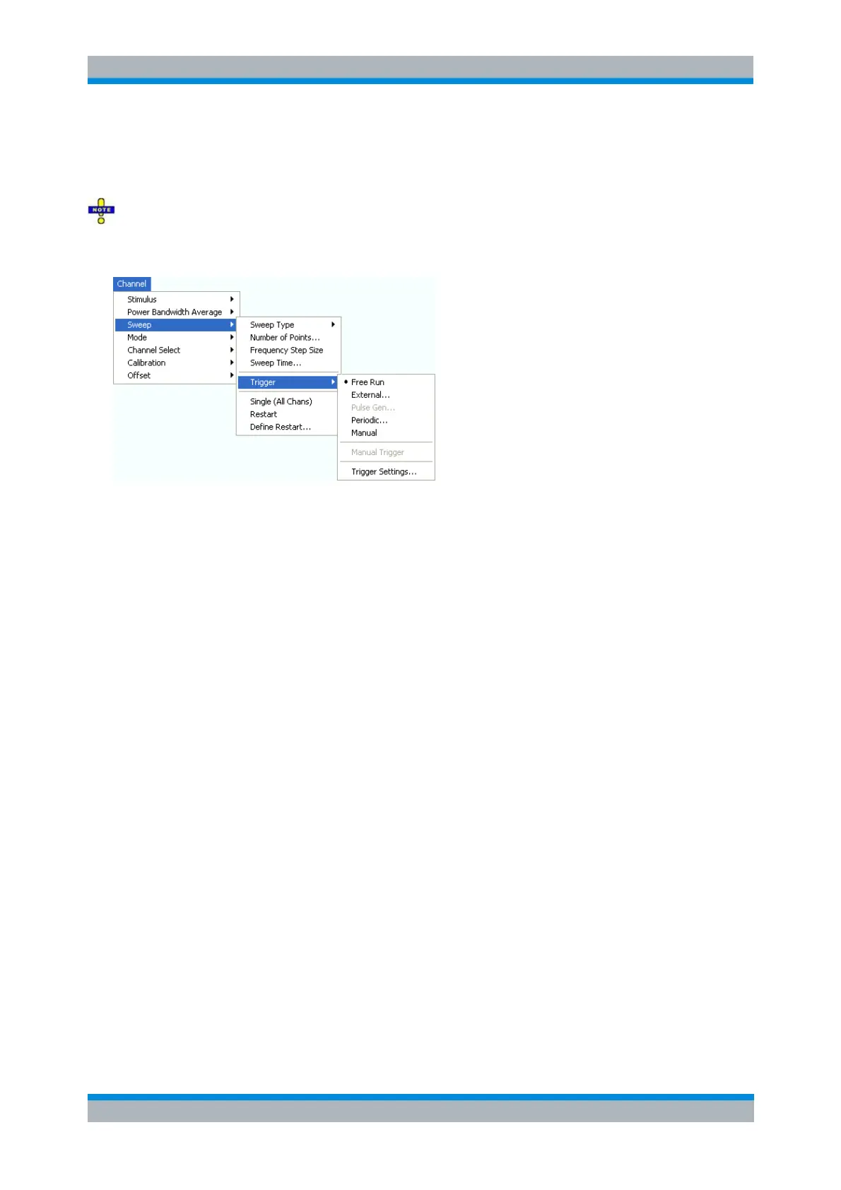 Any trigger event may start an entire sweep or a part of it. Moreover, it is possible to switch off the RF