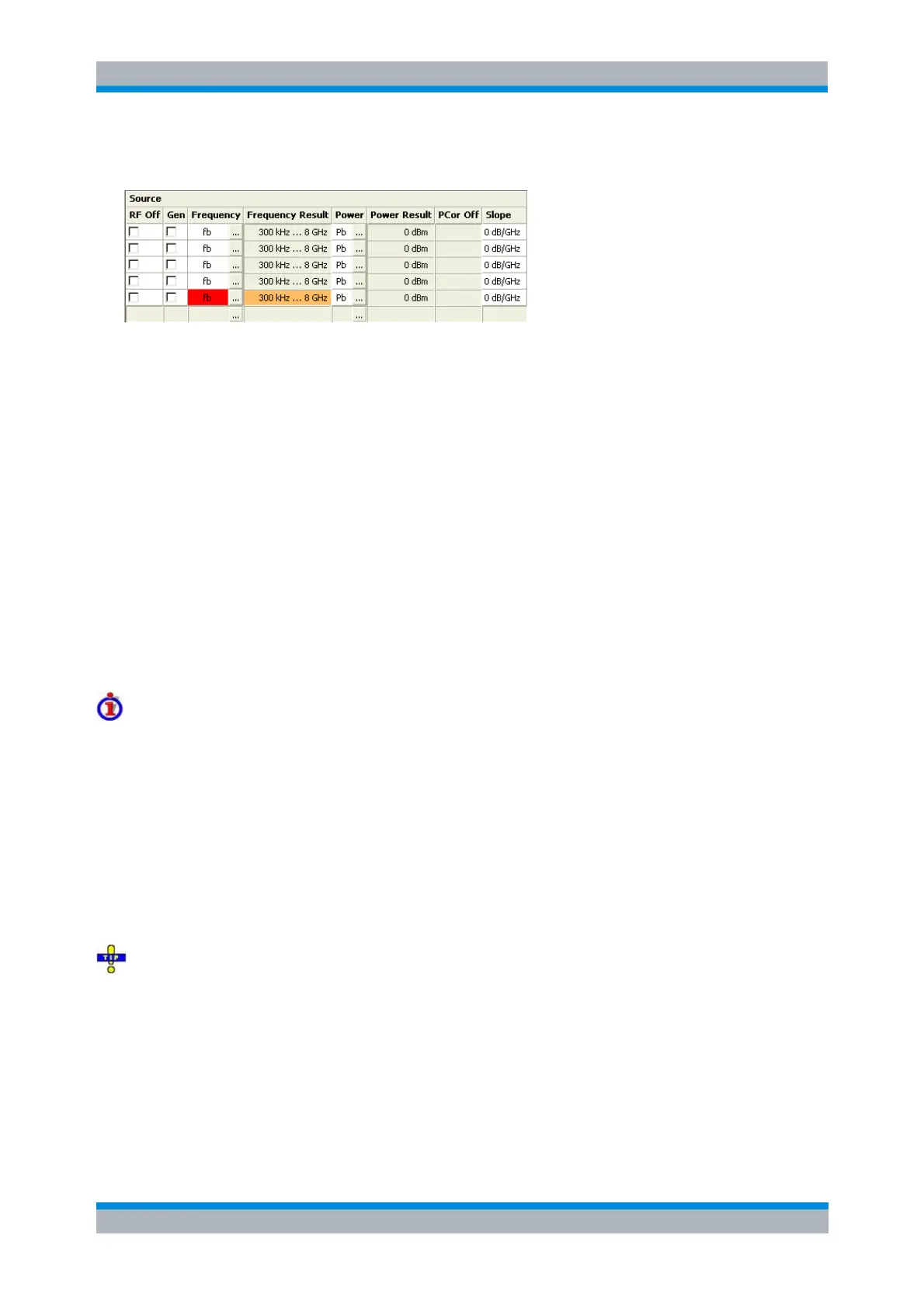 related channel. Dependencies: The column is disabled (grayed) while the RF power is switched