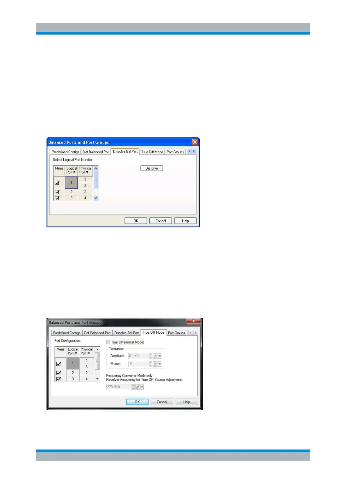 To activate True Differential Mode, a balanced port configuration must be active and the two physical
