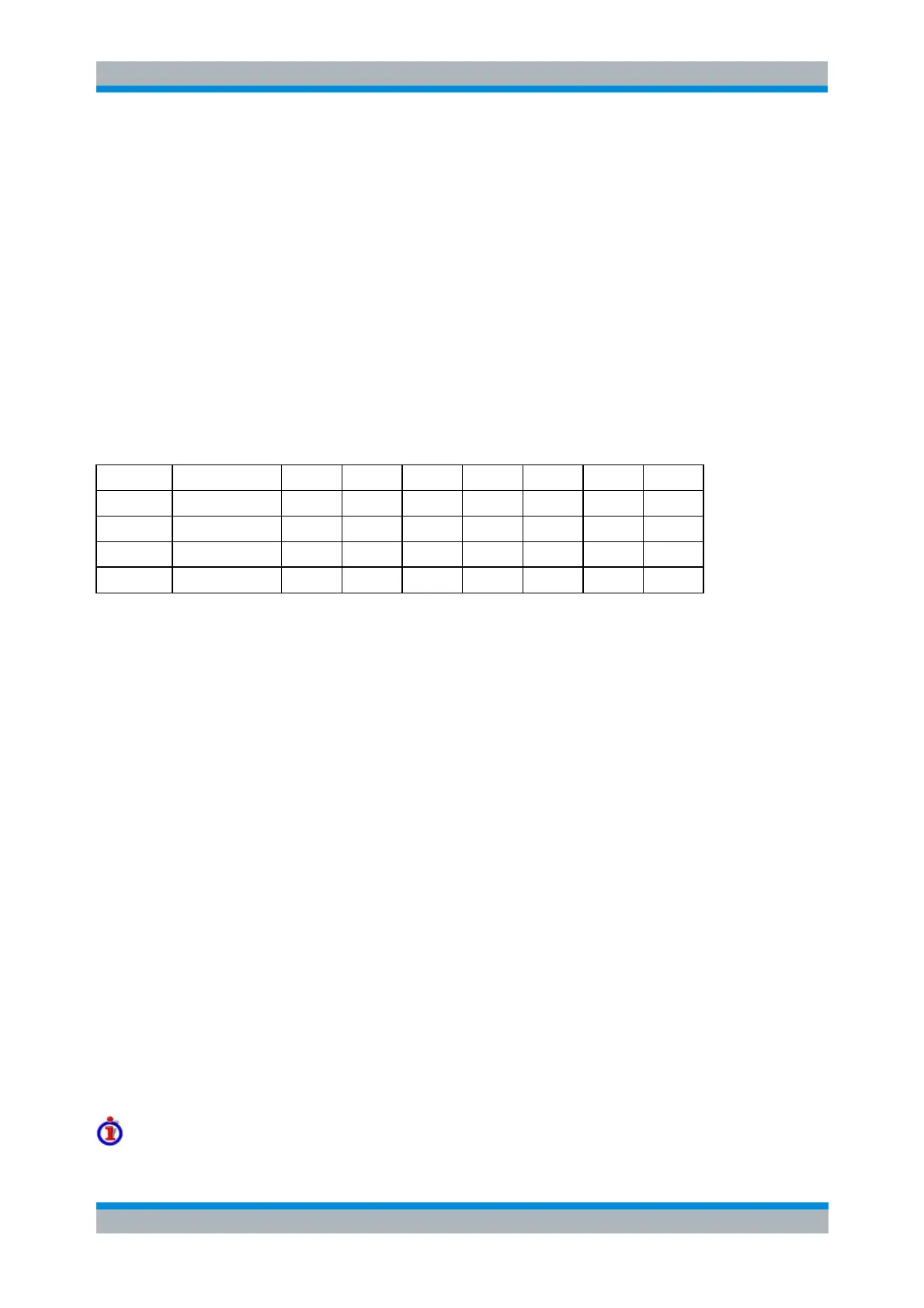 and measuring at which frequency. An entry of "-" means that no measurement is taking place at the