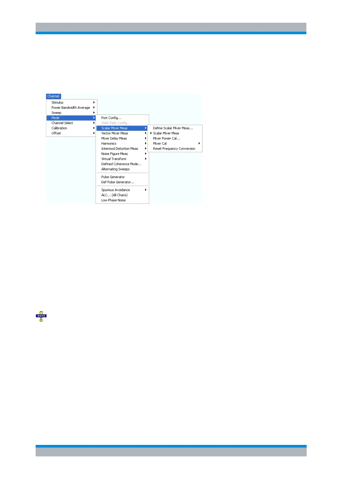Mixer Cal opens a submenu to perform a system error correction for the scalar mixer