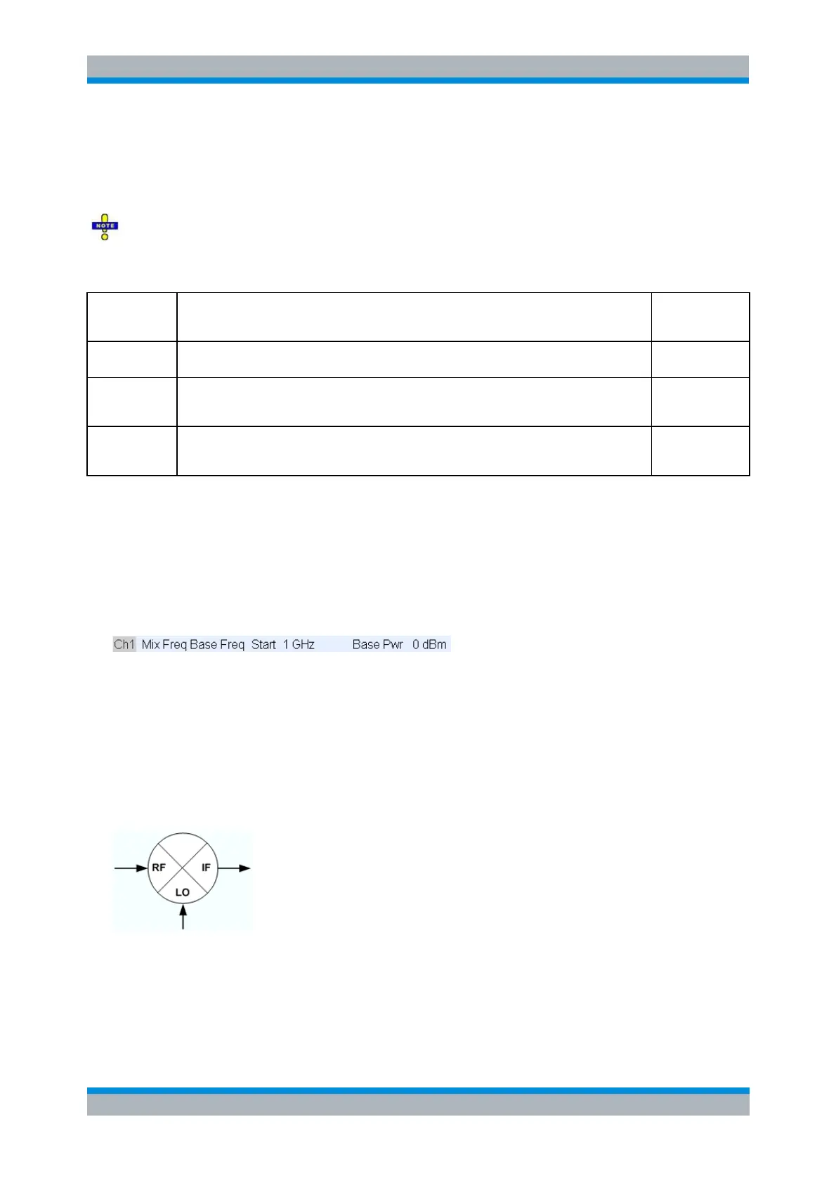 The mixer signal diagrams show the parameters of the mixer input signals (RF, LO) and of the mixing