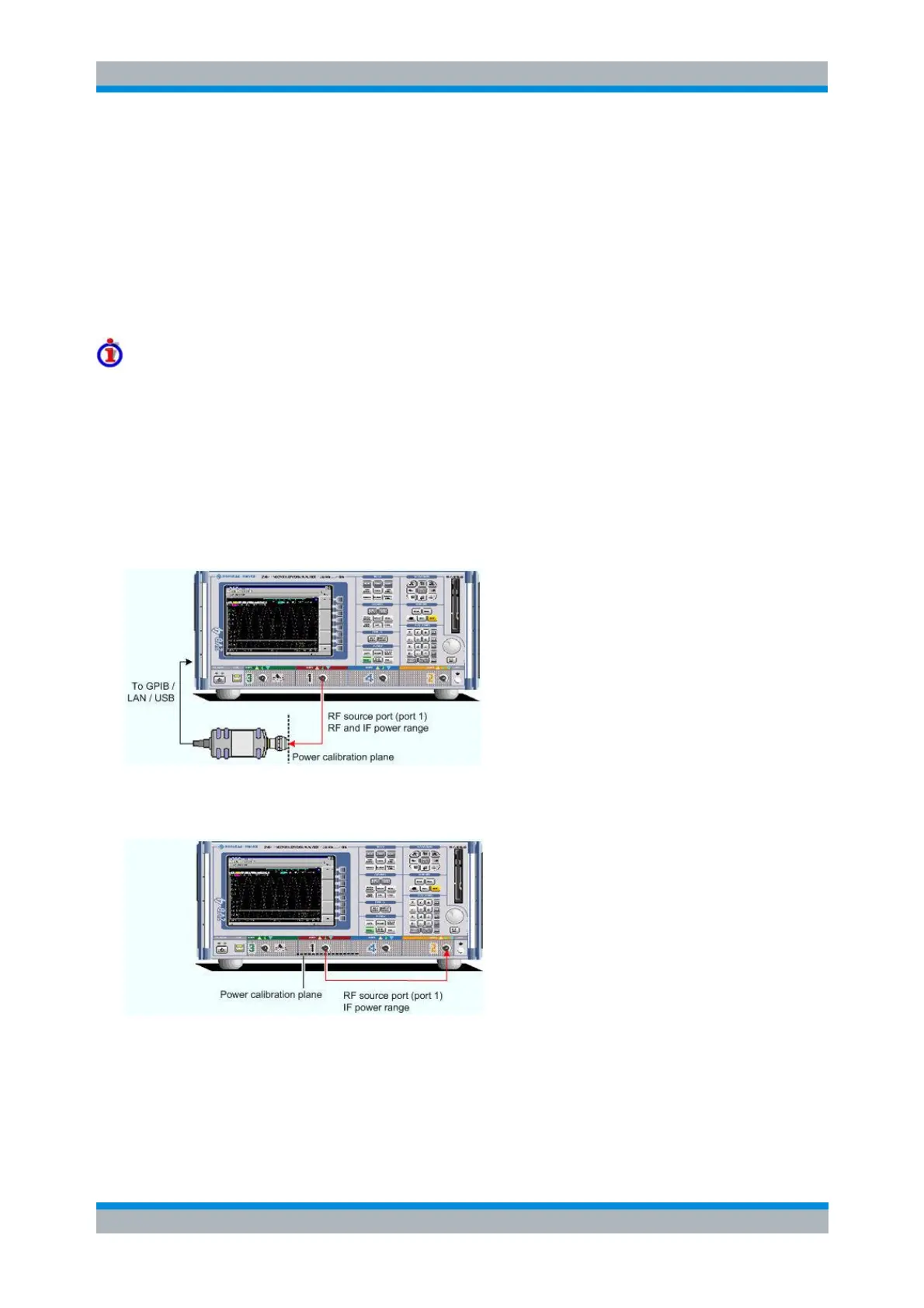 1. Source power calibration for the RF signal. A power sensor is connected to port 1. The RF power