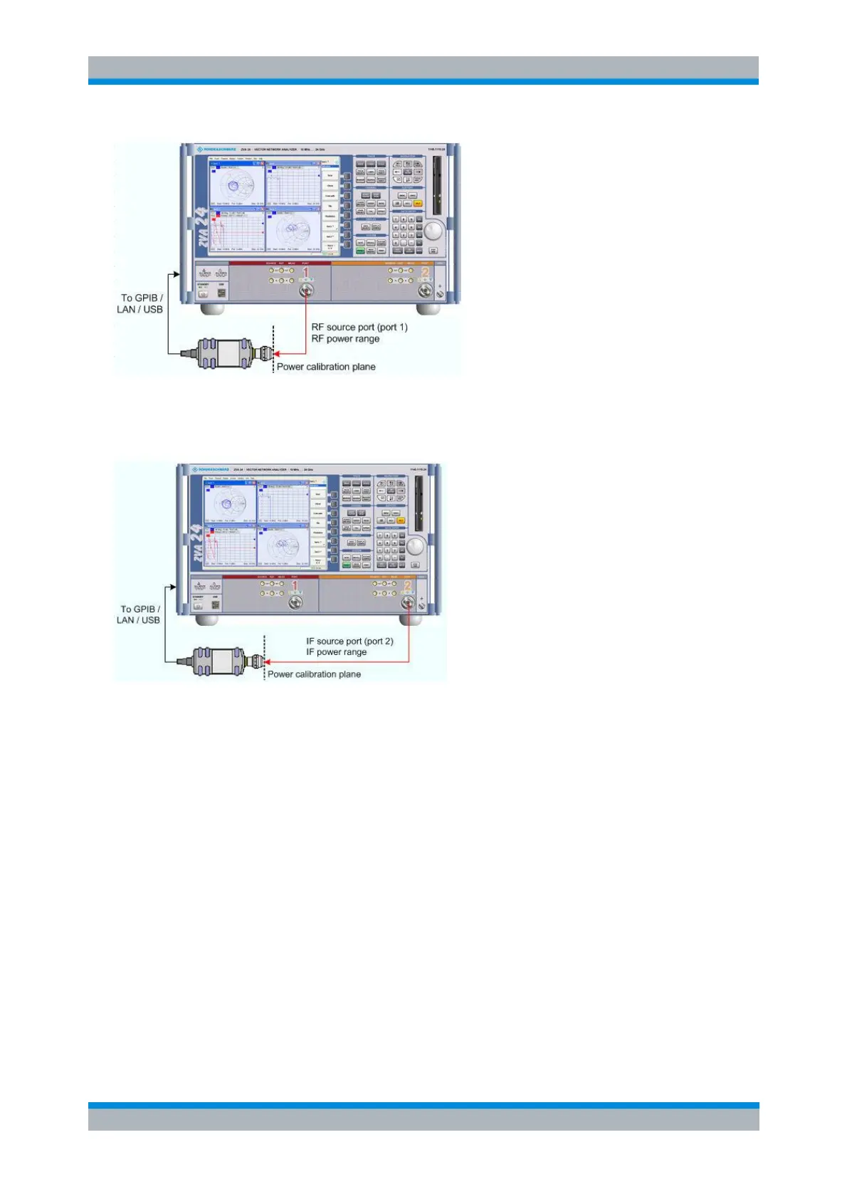 2. Source power calibration for the IF signal. A power sensor is connected to port 2. The IF power
