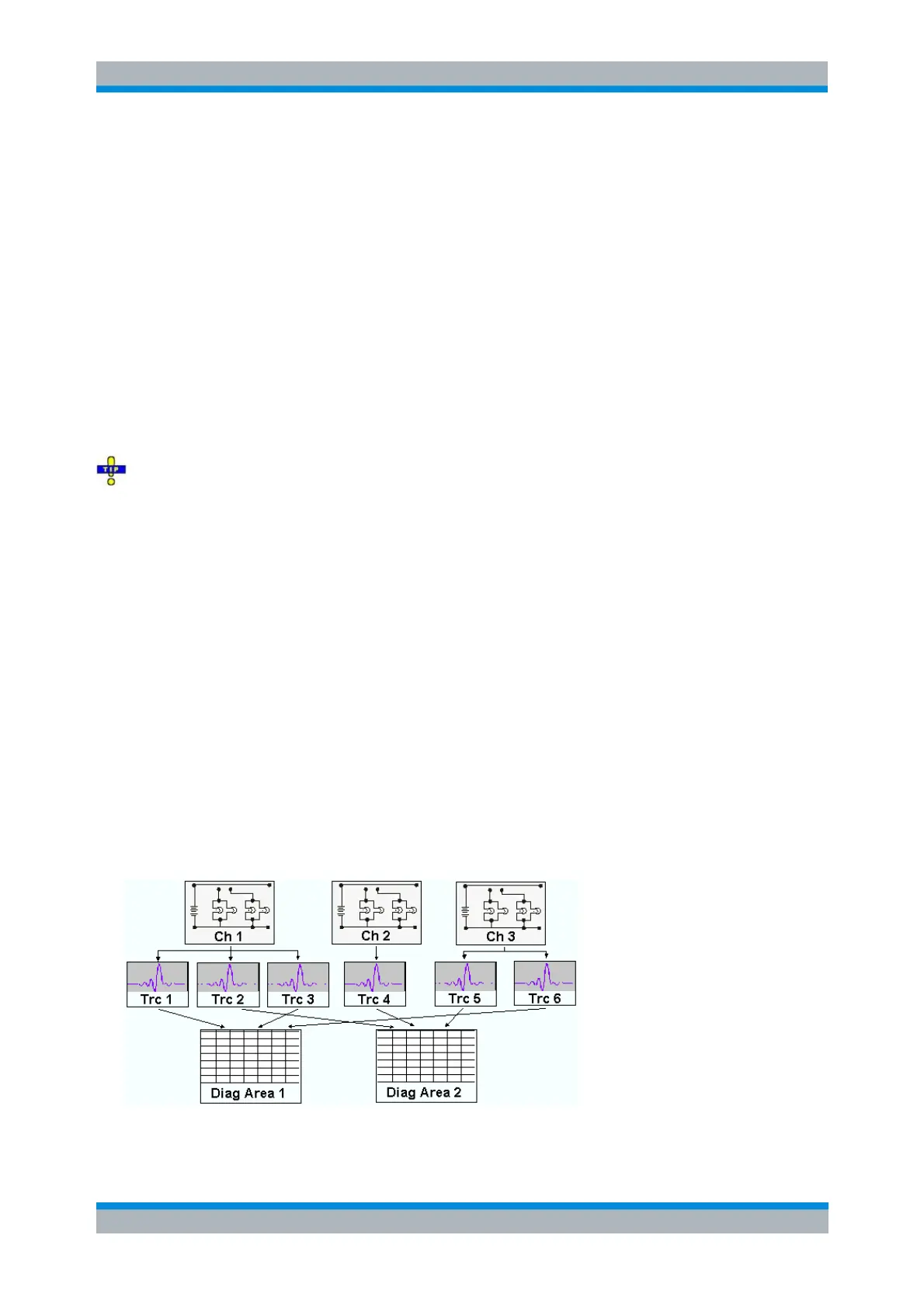 A diagram area can contain a practically unlimited number of traces, assigned to different channels.
