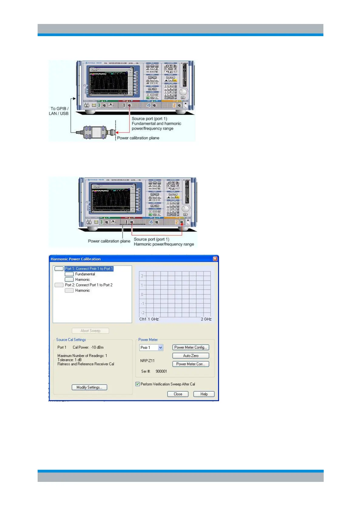 2. Receiver power calibration for the selected harmonic. No external device is needed. The receiver (port