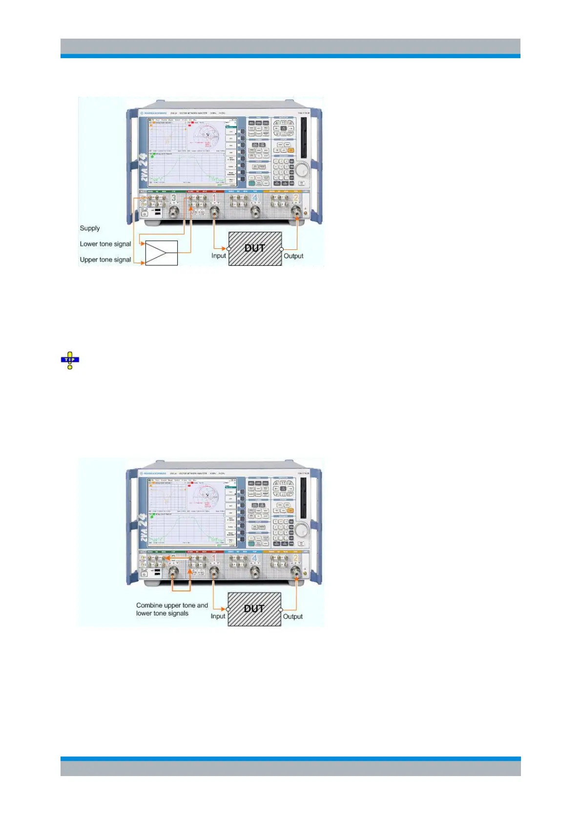 signals are available at test port 1 and can be fed to the DUT input. The intermodulation quantities can be