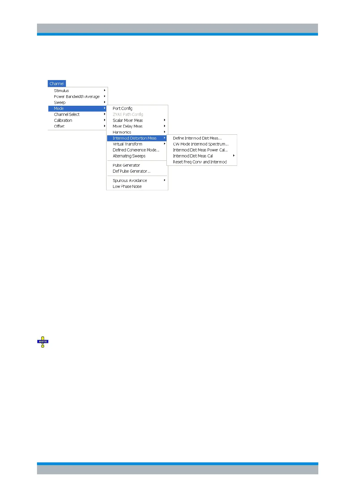 Intermod Dist Meas Power Cal opens the power calibration wizard for the intermodulation