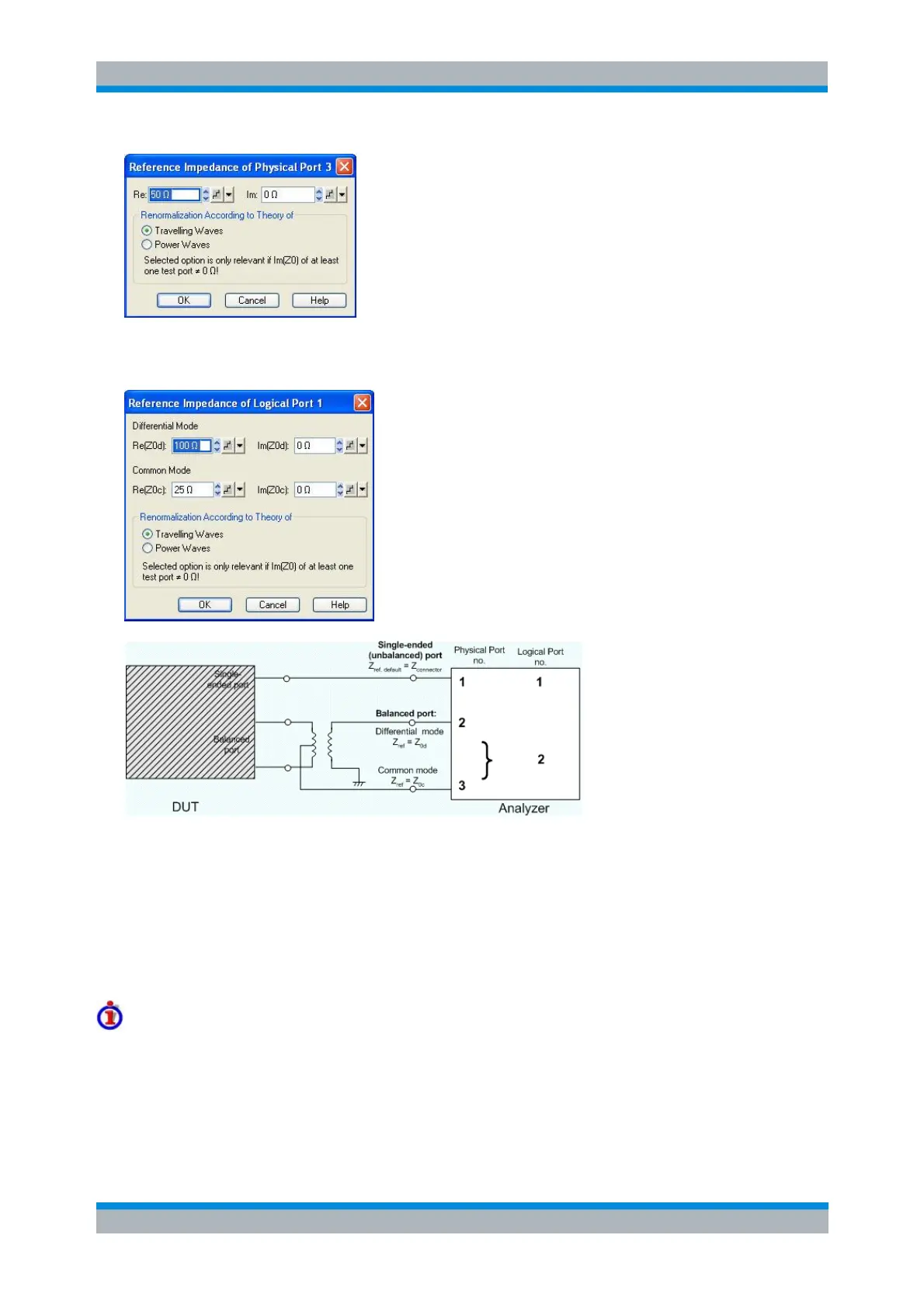 For balanced non waveguide ports it is possible to define separate complex reference impedances for
