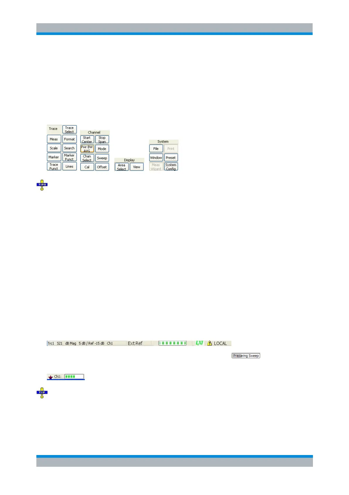 The hardkey bar corresponds to the TRACE, CHANNEL, DISPLAY and SYSTEM keypads: