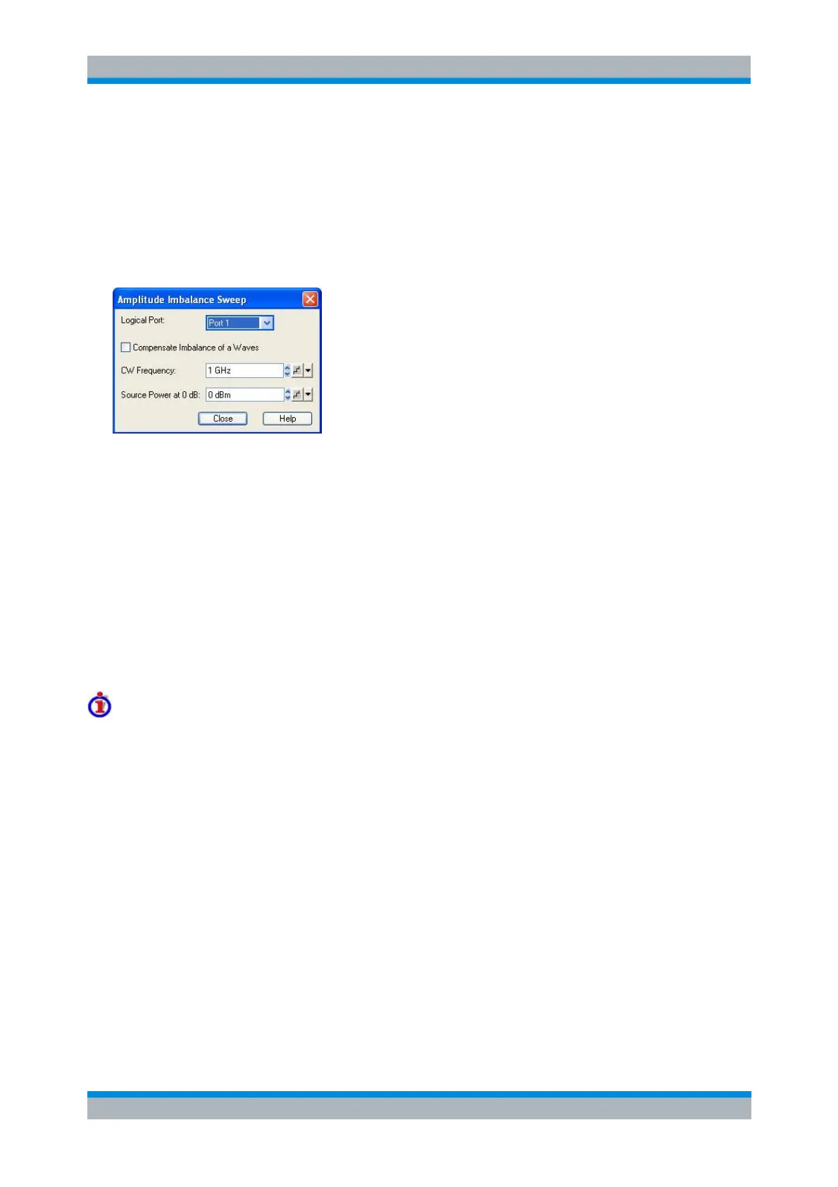 amplitude imbalance sweep. Activating the sweep (Channel – Sweep – Sweep Type: Amplitude