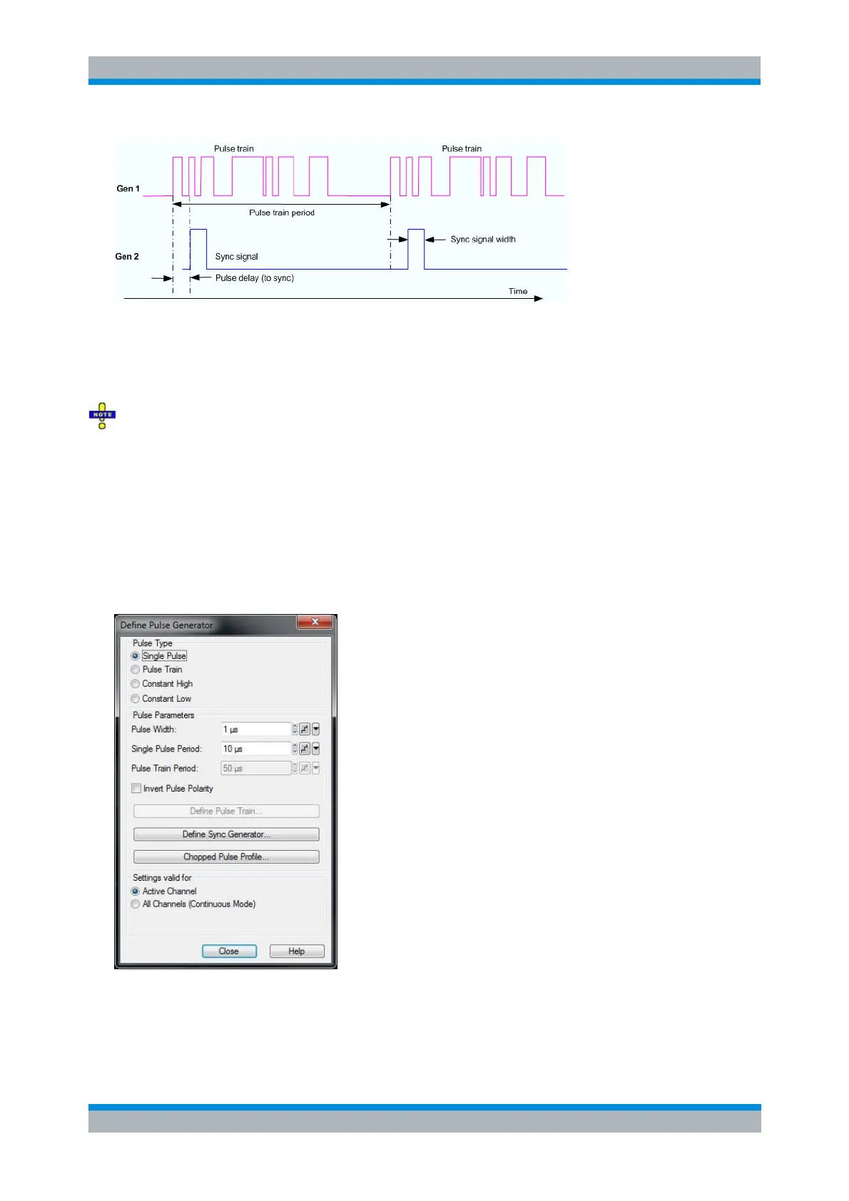 If not specified otherwise, the pulse generator settings are channel-specific.