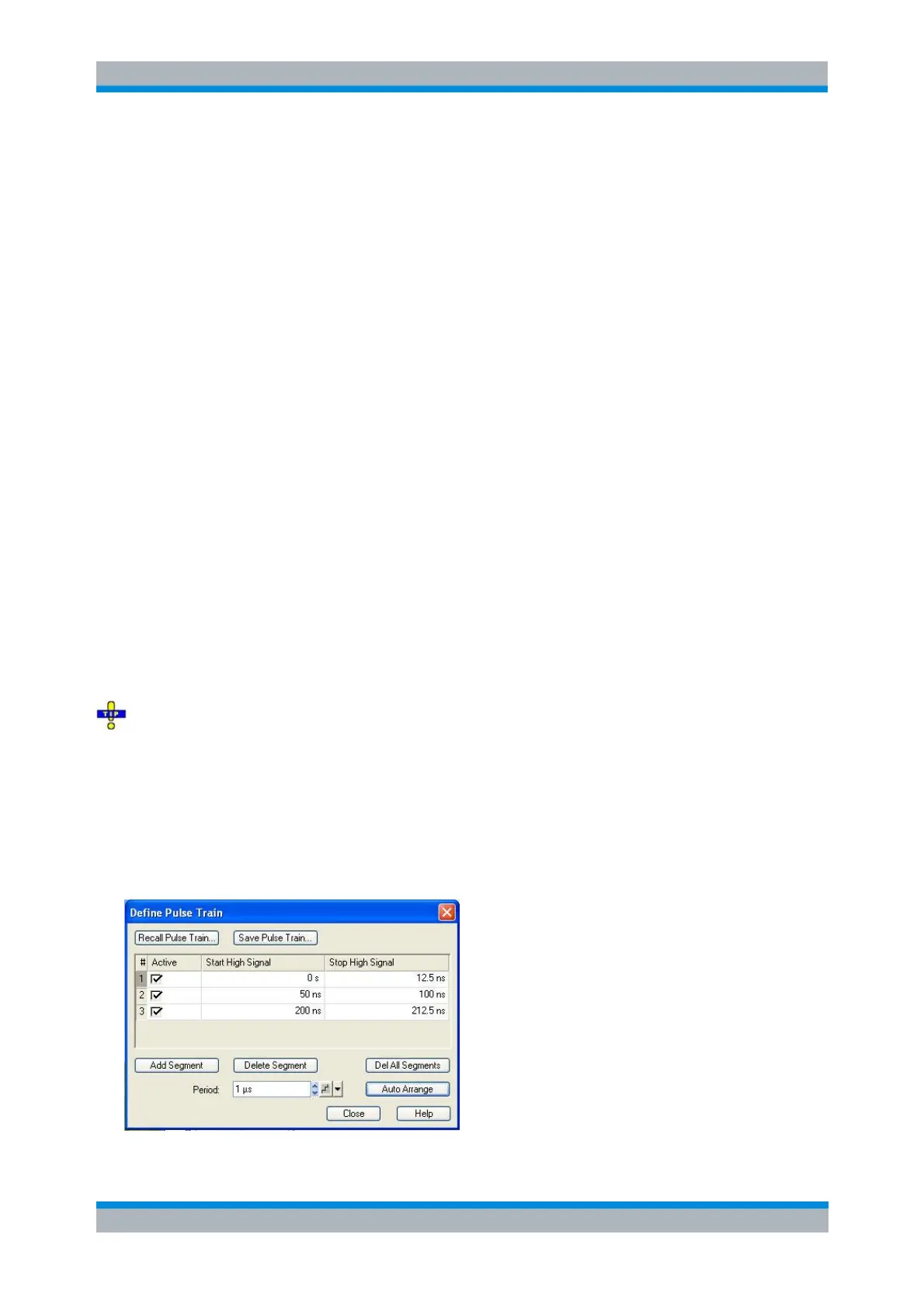 To configure a pulse train with only a few segments, use Add Segment and edit each range in the