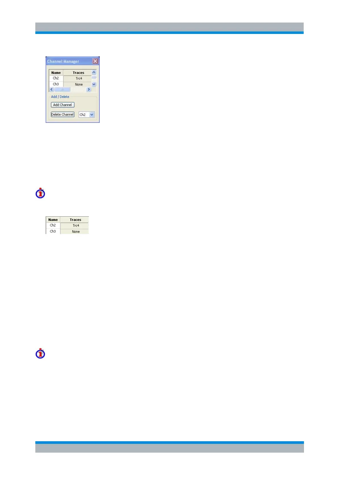 All existing channels of the current setup are listed in a table; see below. Below the table the Trace