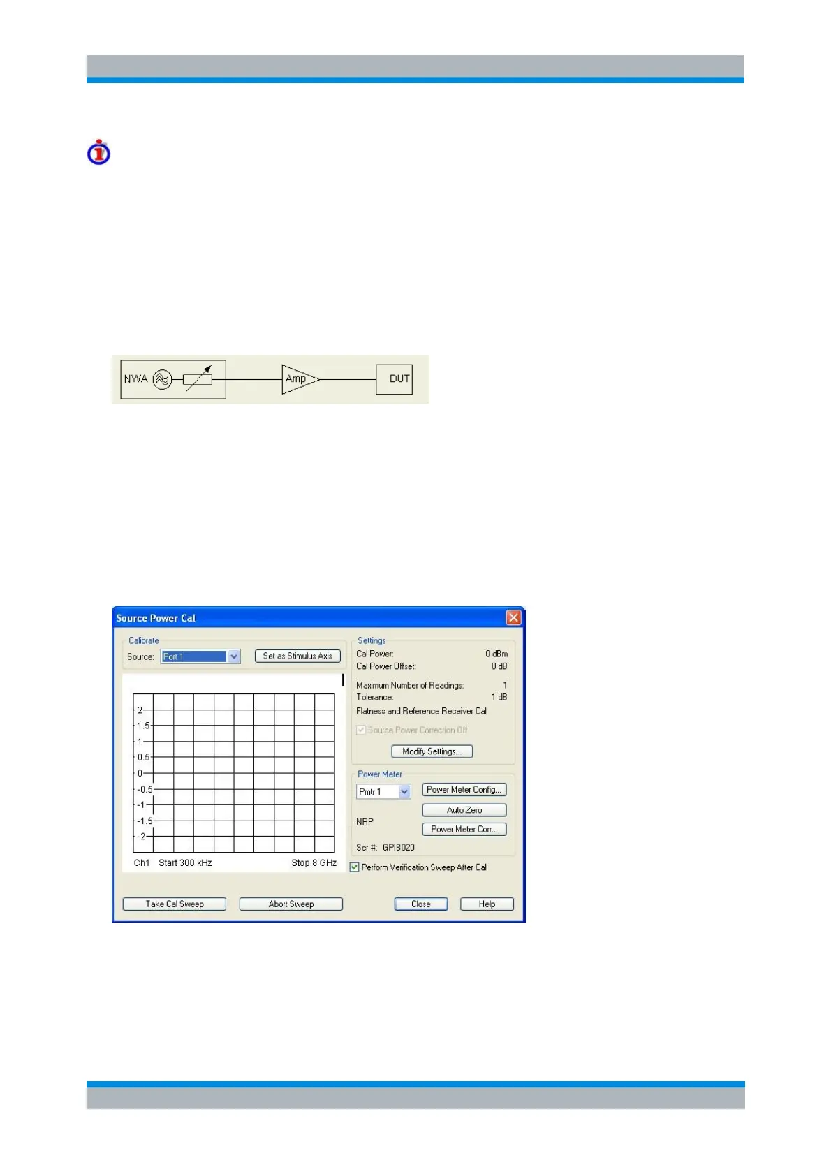 target power (Cal Power) at the reference plane. A known attenuation or gain at the source port