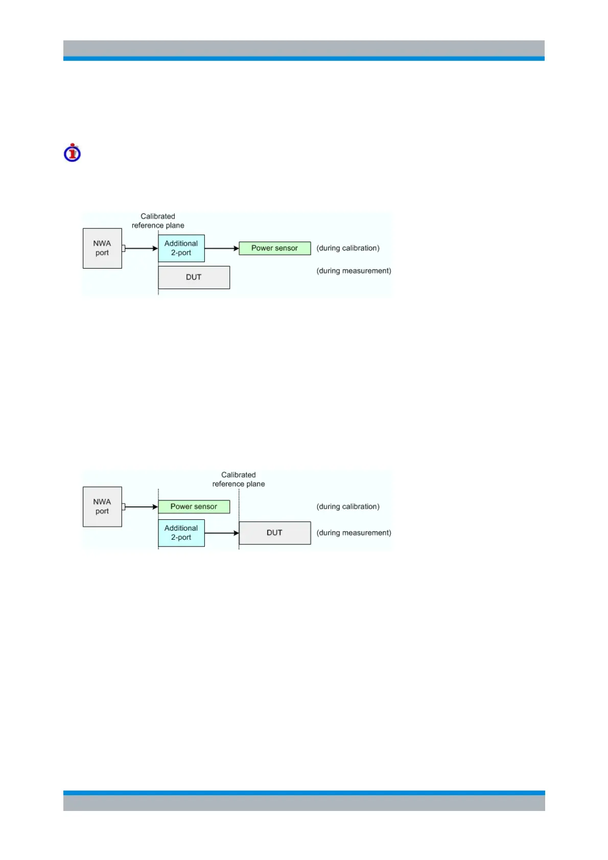 to the output of an additional 2-port which is placed in-between the NWA port and the DUT.