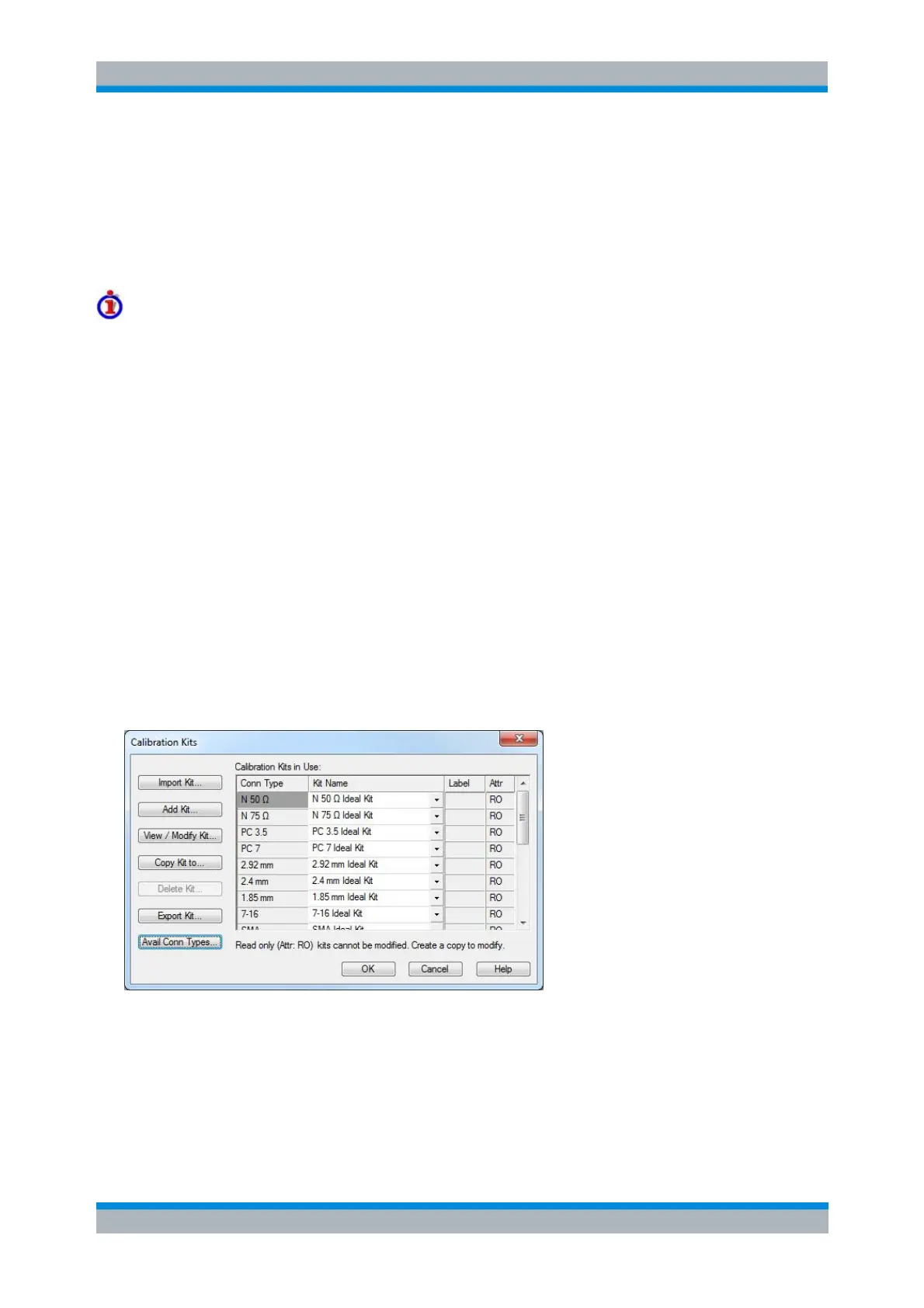 Imported and user-defined kits can be changed in the Calibration Kits dialog and its various sub-