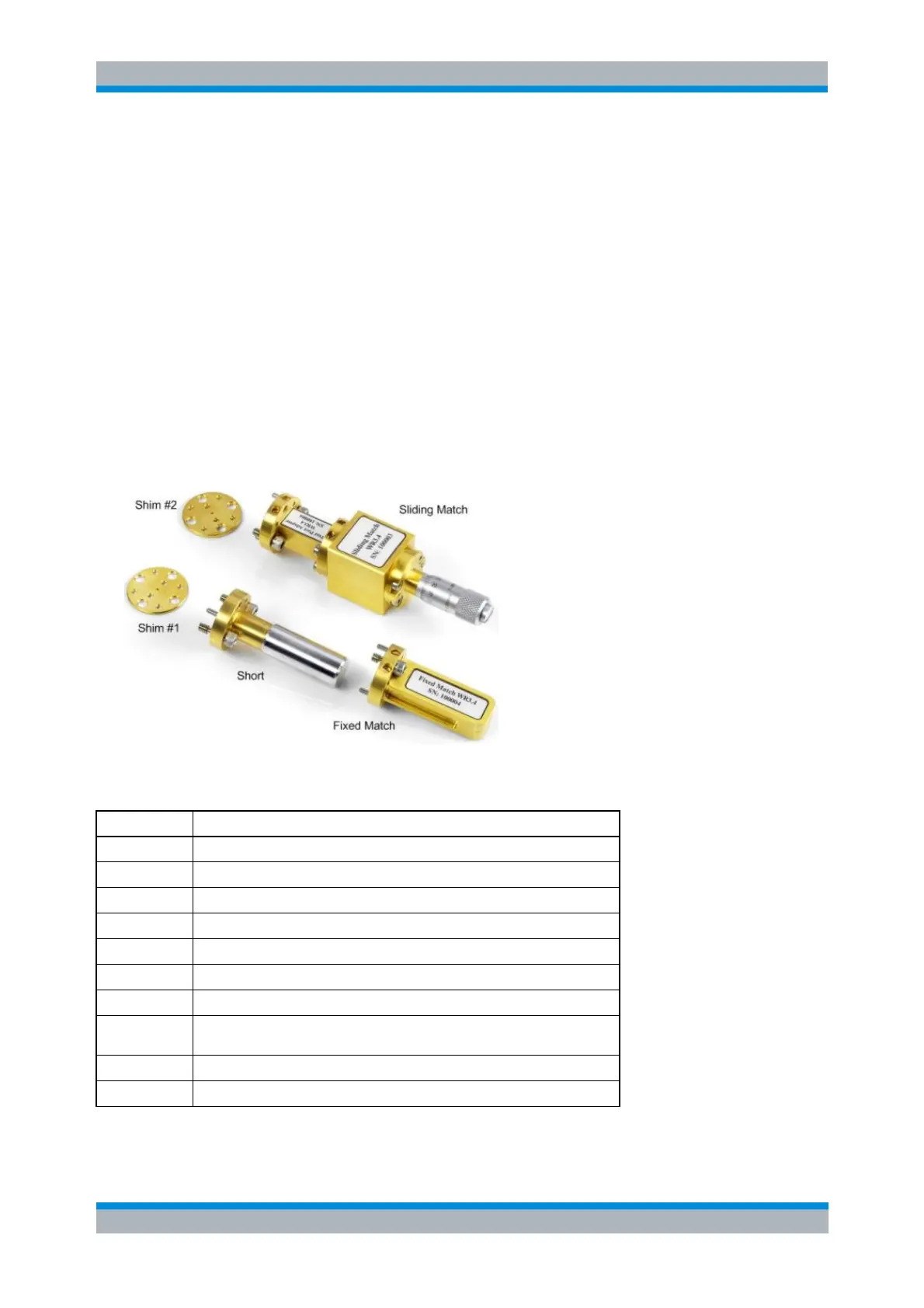 The following table provides an overview of the available standards for rectangular waveguide calibration