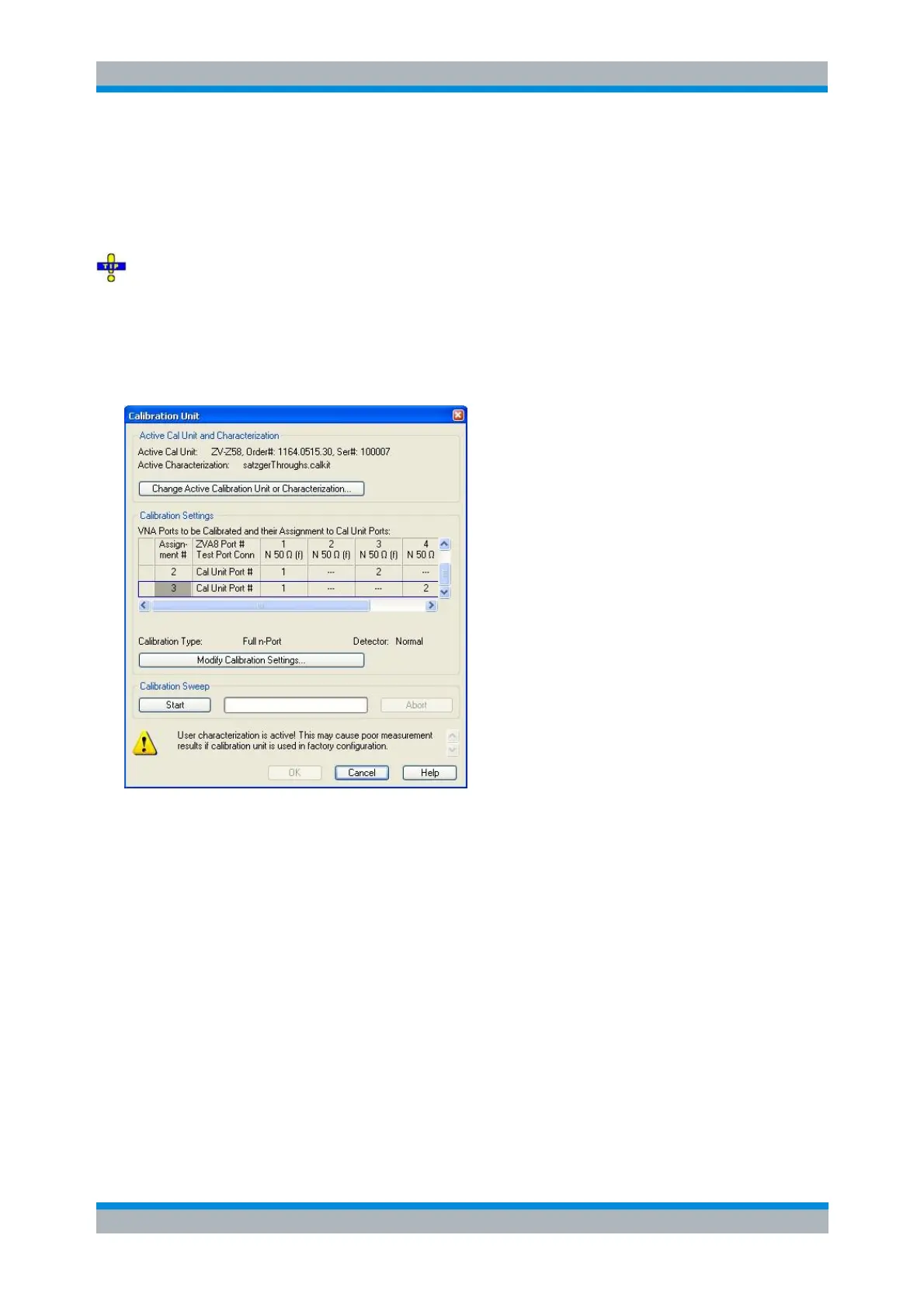 Select Channel – Calibration – Characterize Cal Unit... – Disable User Characterization Warnings if