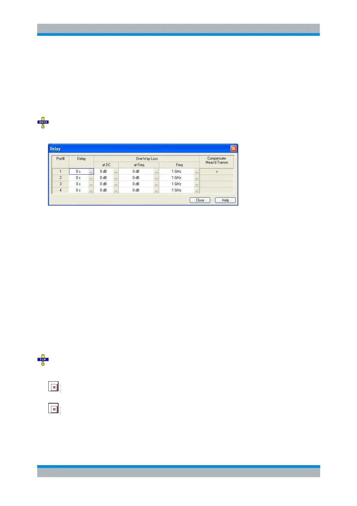 Opens a dialog to define the length offset parameters for the physical test ports as delays. The dialog also