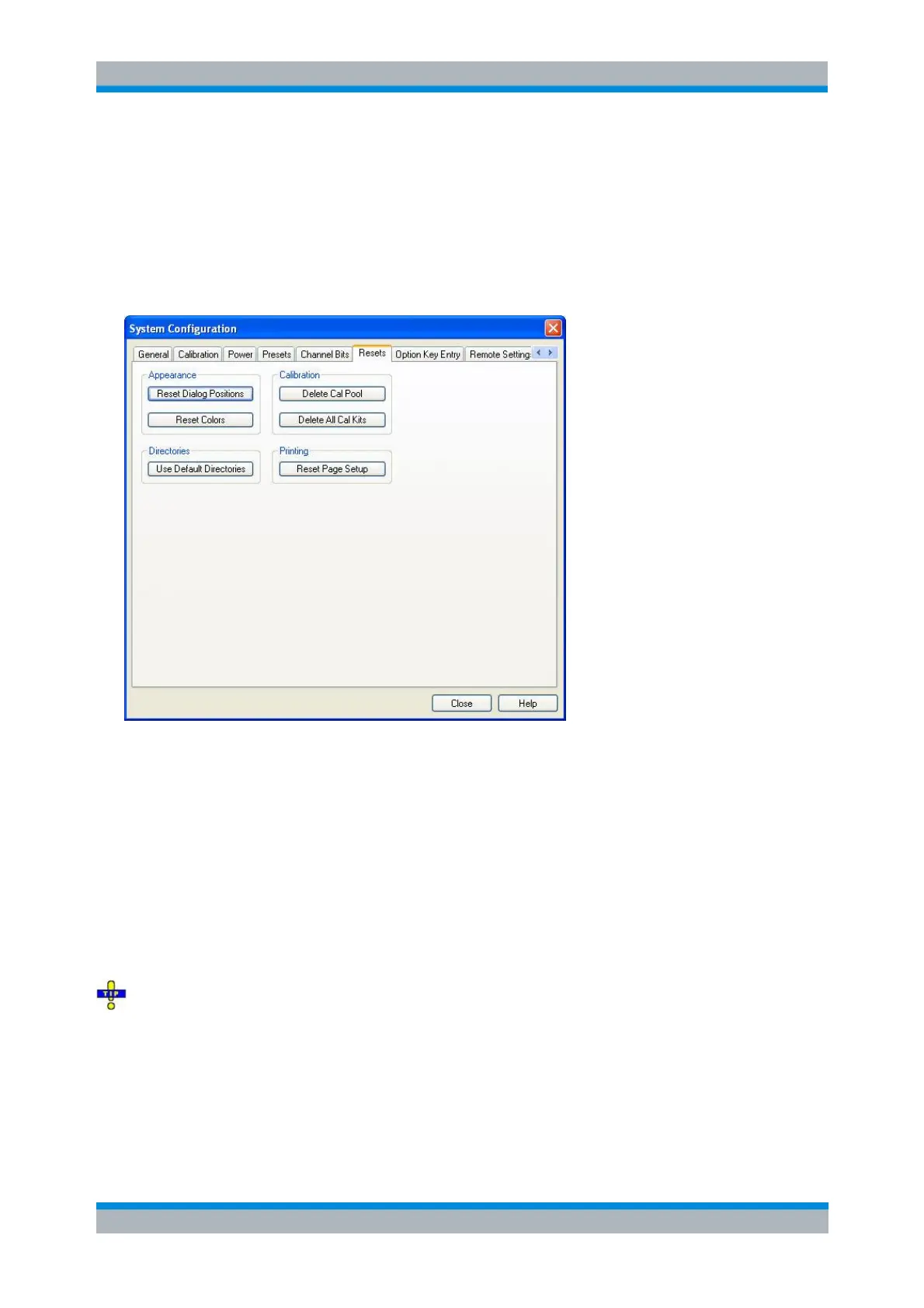 Provides several buttons to reset global instrument settings and properties. Global settings (e.g. the data