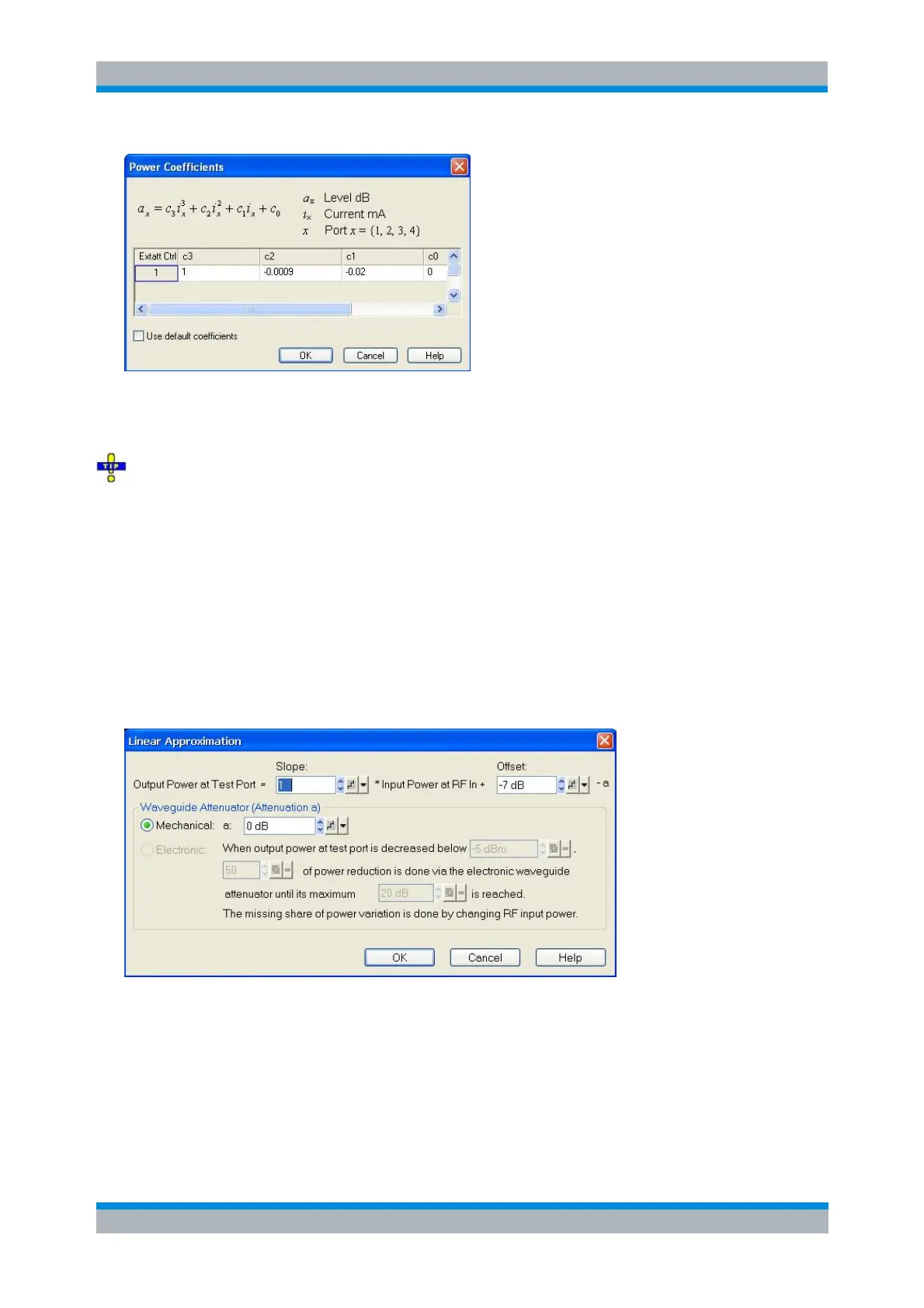 port. It can be opened from the Lin. Approx Coefficients button in the Port<i> Power Control dialog.