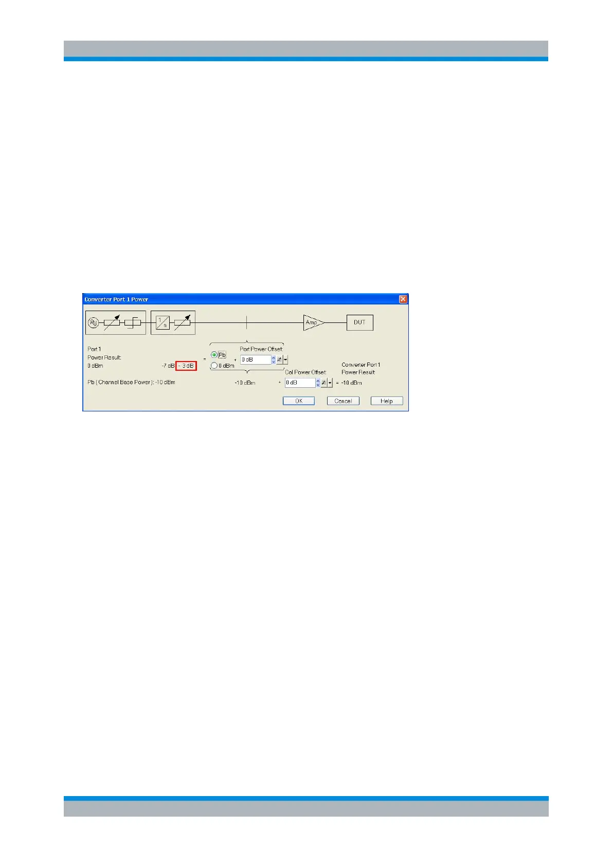 Power dialog. The analyzer will increase its port power, compensating for the power reduction selected in