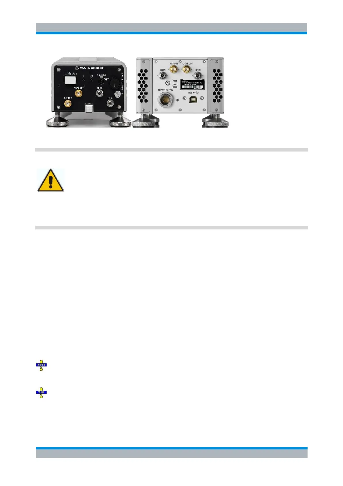 quality cables for the connection of the RF and LO input signals. Appropriate cables for the REF OUT and