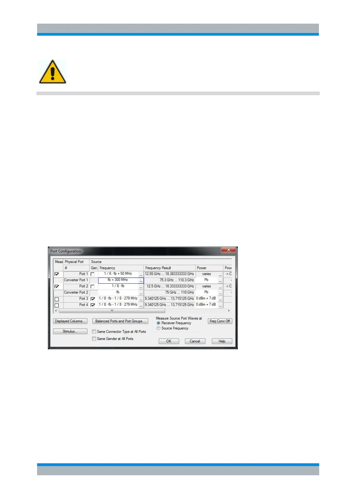 control the frequency and power range of the converters. In addition the Port Configuration dialog shows