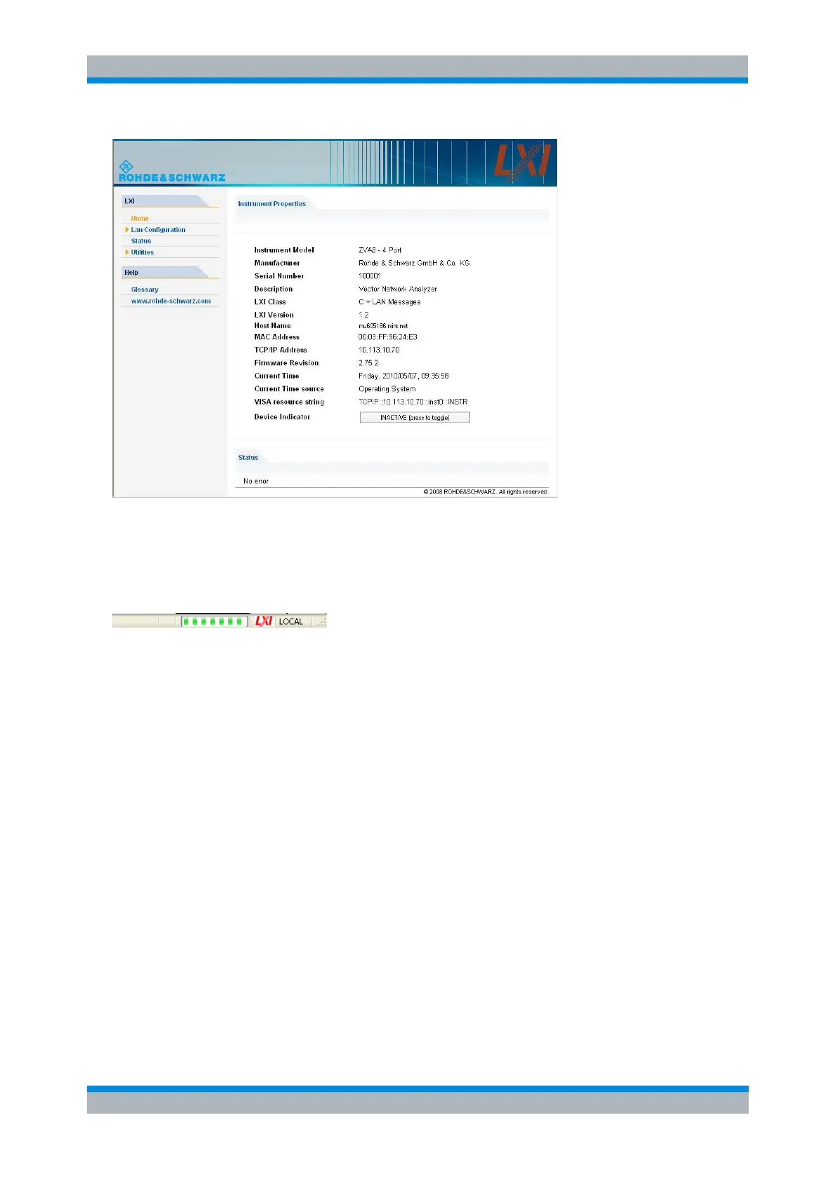 status bar of the analyzer to blink (if active). A green LXI status symbol indicates that a LAN connection