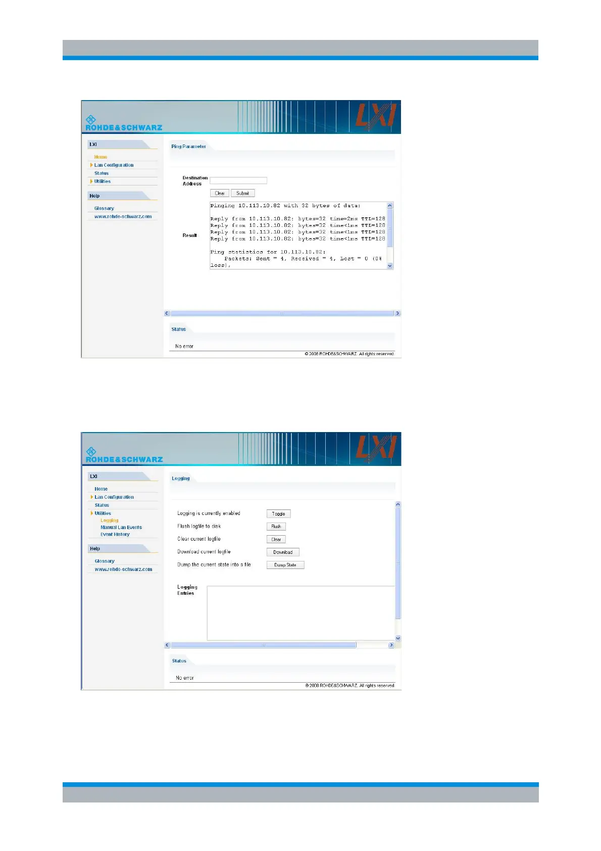 If logging is enabled, all internal and external LXI events (e.g. the LXI event messages exchanged