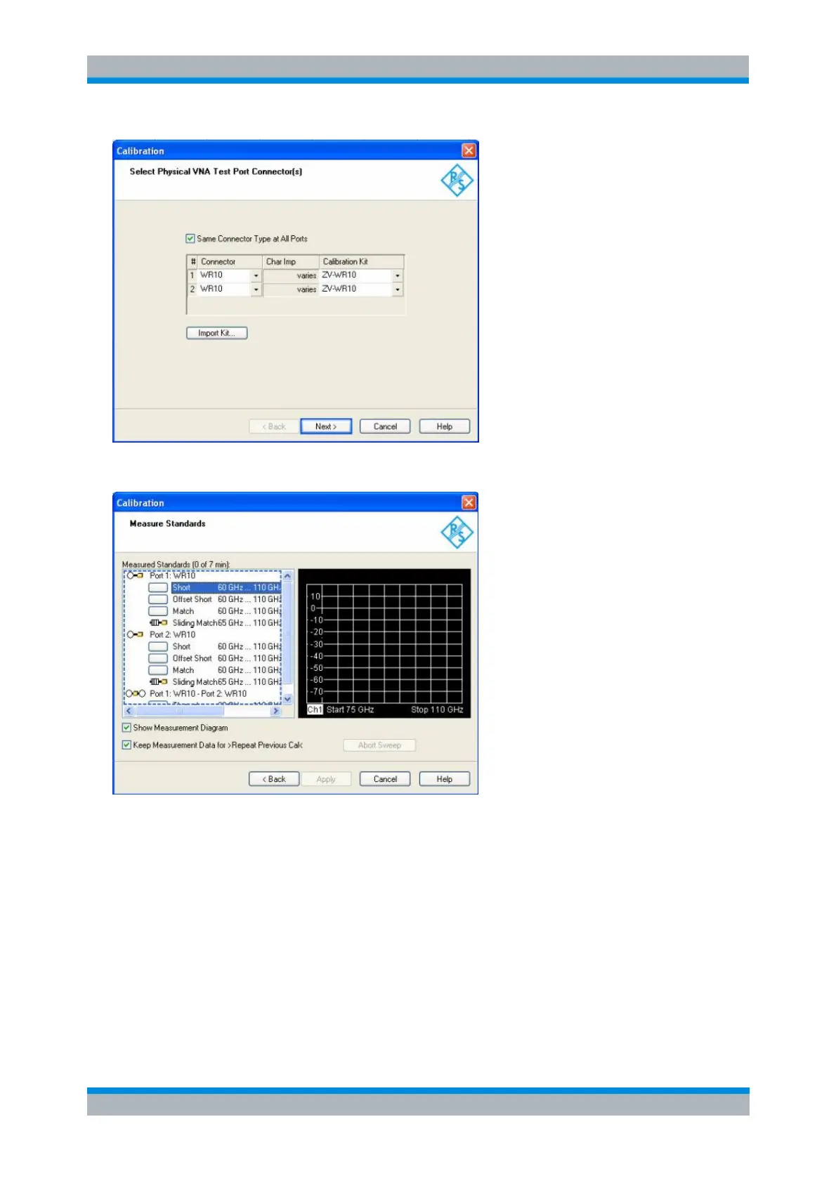 5. Proceed in a similar way, using the Short and the Shim in the calibration kit (producing an “Offset