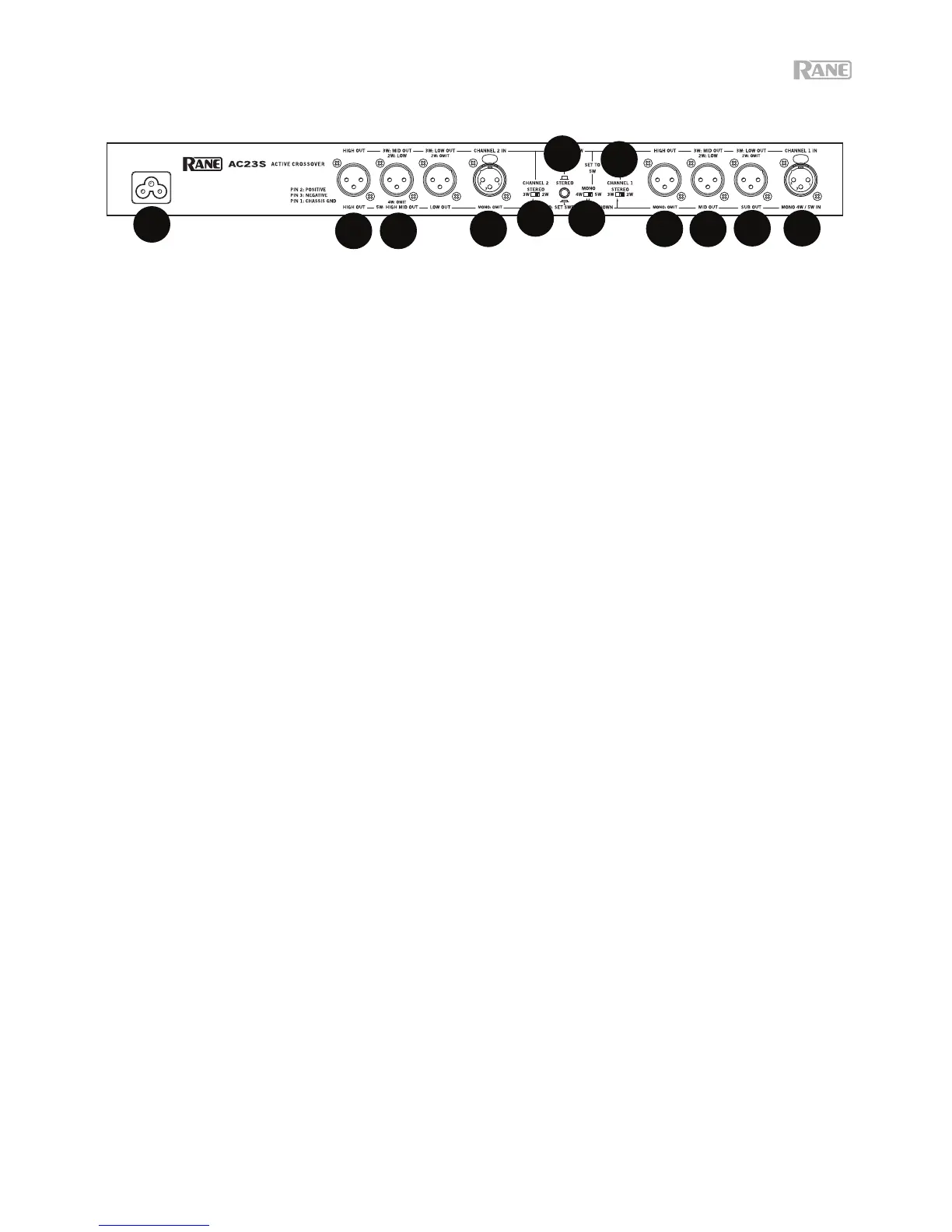 8. Interruptores de estéreo de 2 / 3 vías: Para esta configuración, ajuste el canal 1 a 3W y el canal 2 a 2W.