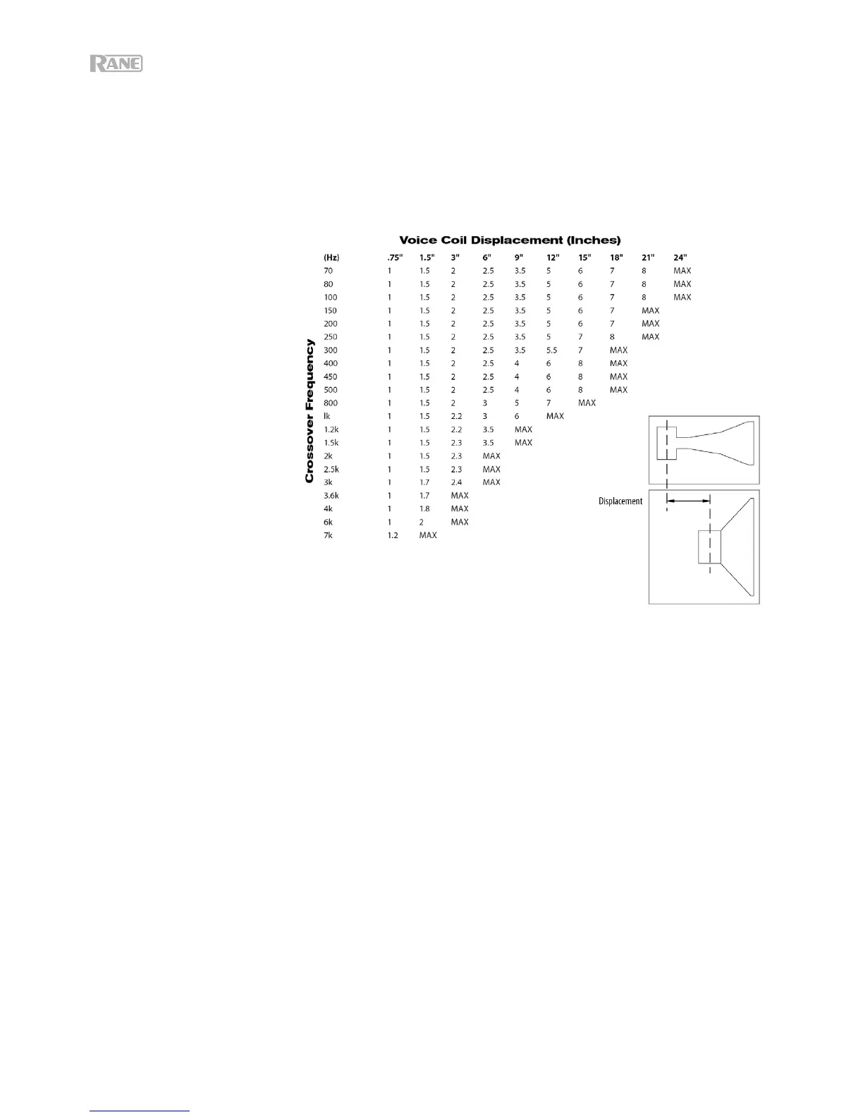 cm (9 Zoll) Verschiebung bei 800 Hz am Tisch entspricht, „5“ wie auf der Frontplatte angegeben. Um zwei Treiber